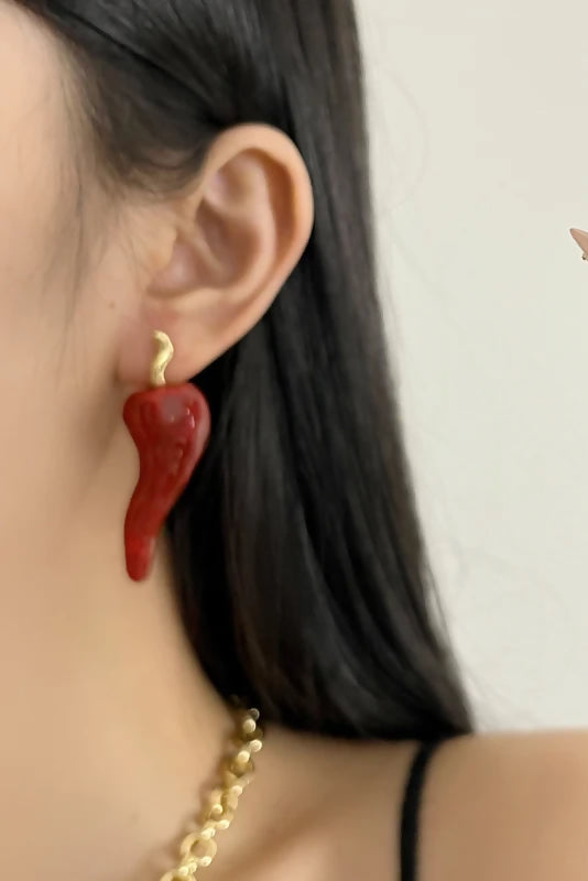 For all the spicy girls out there, these Mirchi earrings in bold red are a must-have! With their dainty yet striking design, they strike the perfect balance between elegance and attitude. The fiery red color makes a powerful statement, adding a bold touch to your look while keeping it light and effortlessly chic. Whether you're dressing up for a night out or adding flair to your everyday style, these earrings are the perfect way to express your fiery spirit.