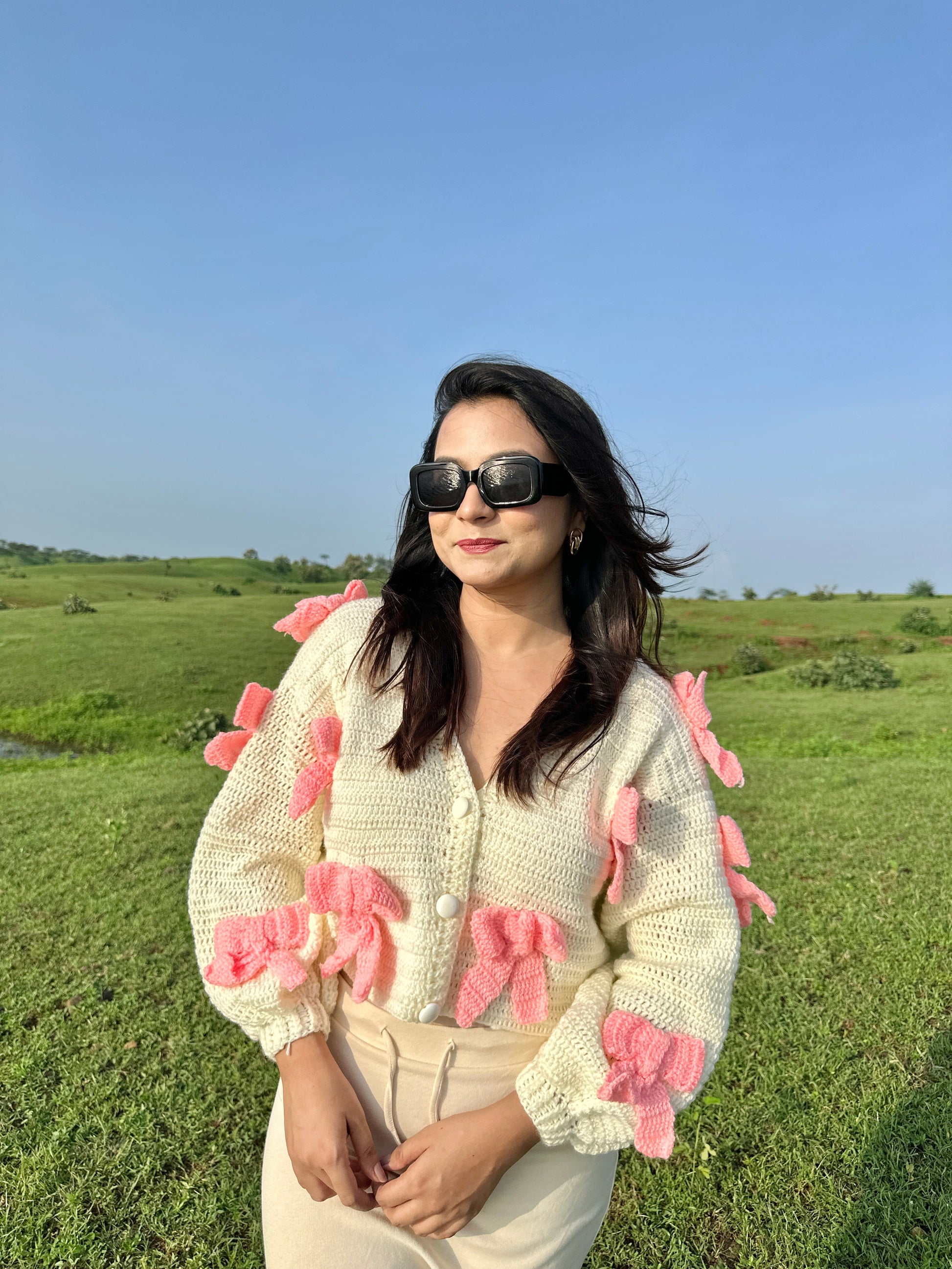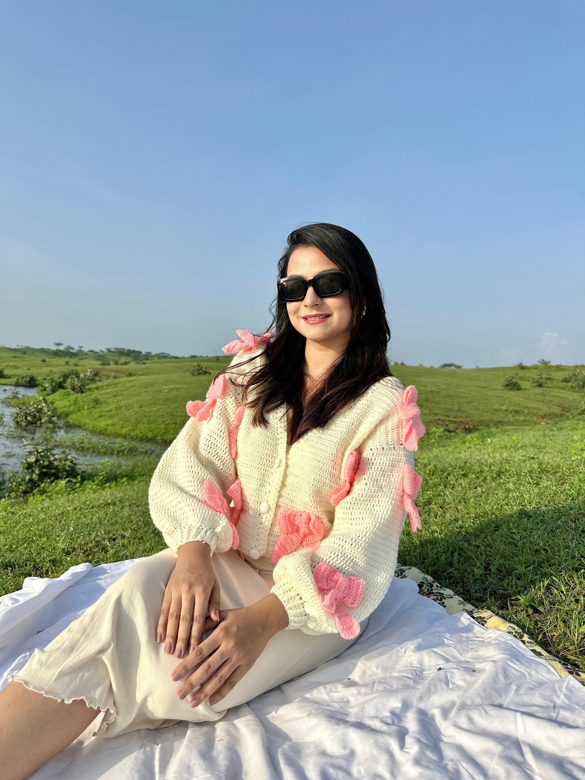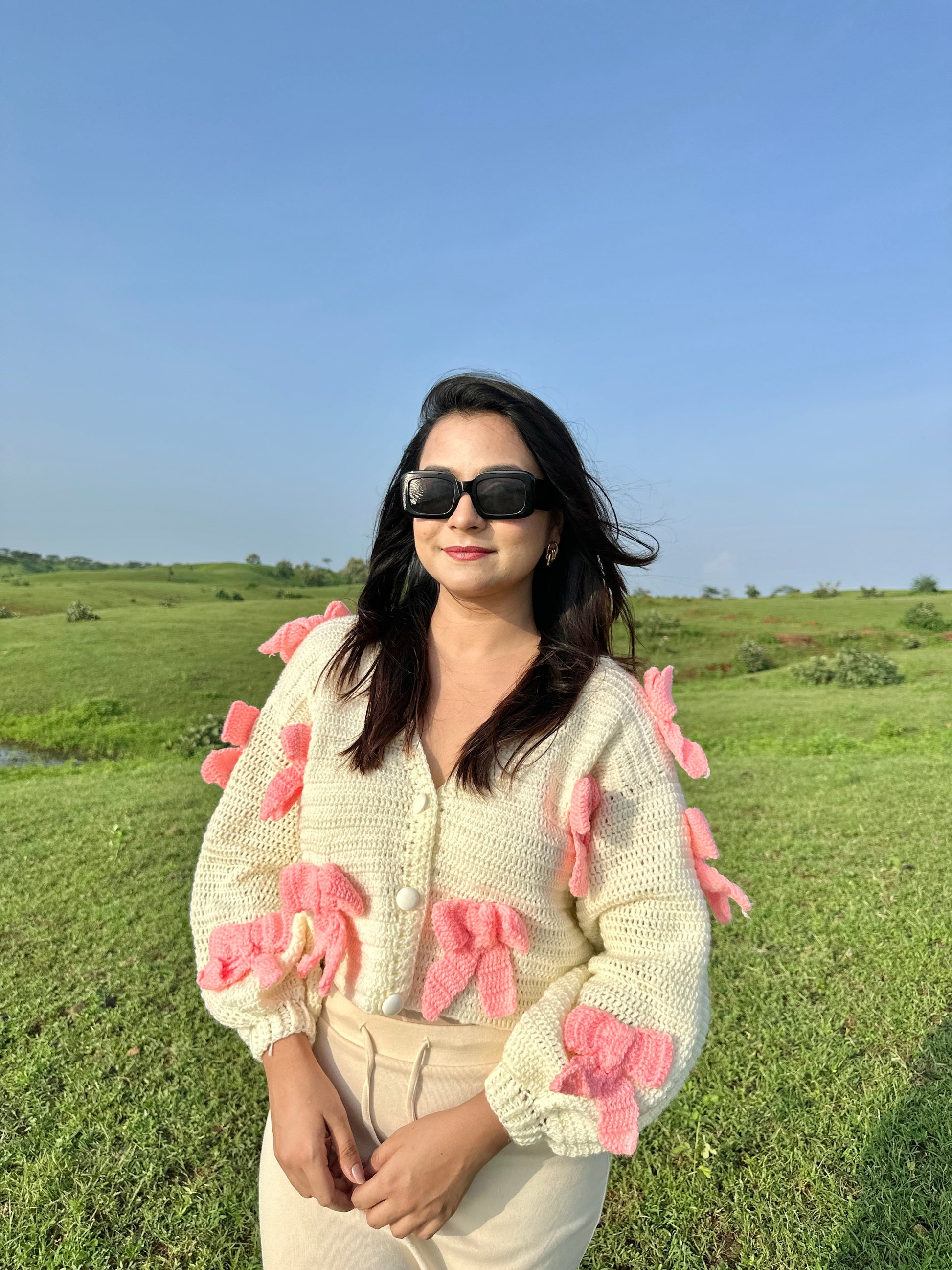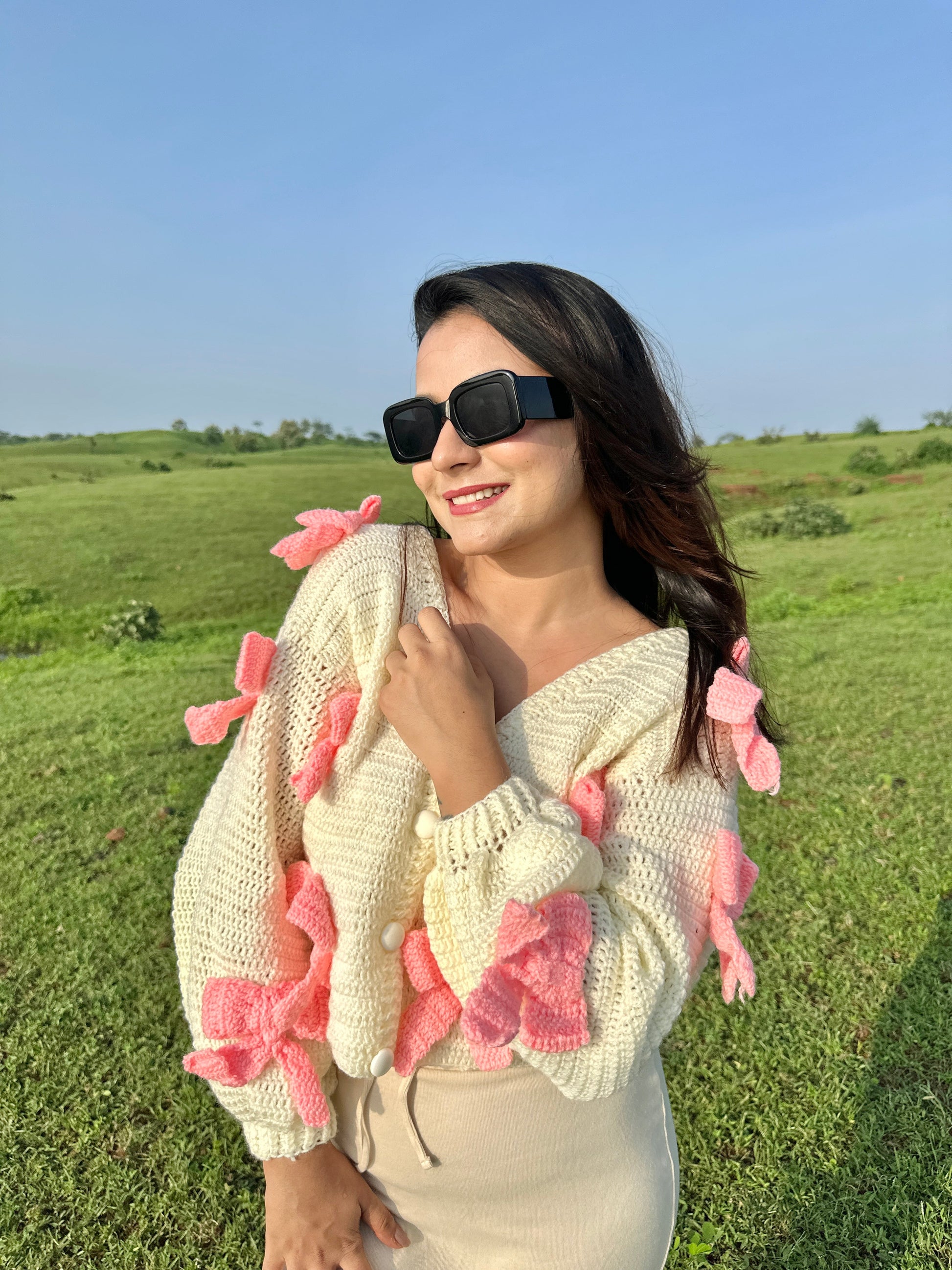 Add a touch of fairy-tale elegance to your wardrobe with our Cinderella Bow Cardigan. This enchanting piece features delicate bow accents, reminiscent of Cinderella's timeless grace and charm. Crafted from a soft, lightweight fabric, it drapes beautifully, making it perfect for layering over blouses or dresses. The subtle bow details and a gentle, feminine silhouette create a look that’s effortlessly romantic and chic. Ideal for both special occasions and adding a bit of magic to your everyday outfits, the Cinderella Bow Cardigan is your go-to for a touch of classic elegance with a modern twist.