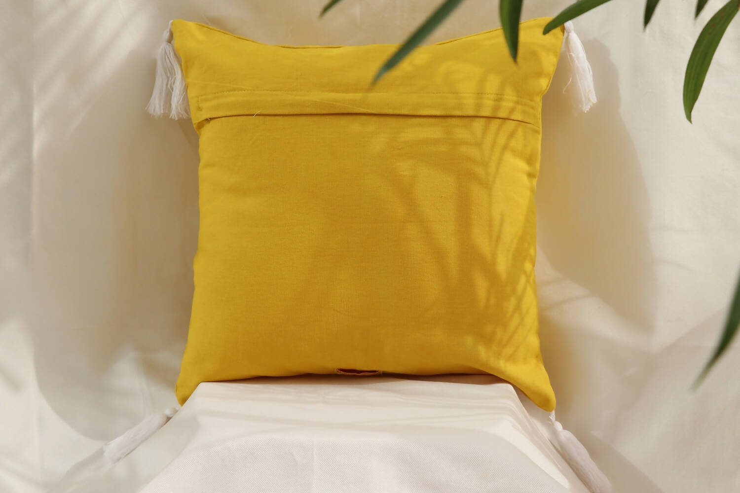 The cushion cover is made with duck cotton fabric, embroidered by local artisans of UP, India.