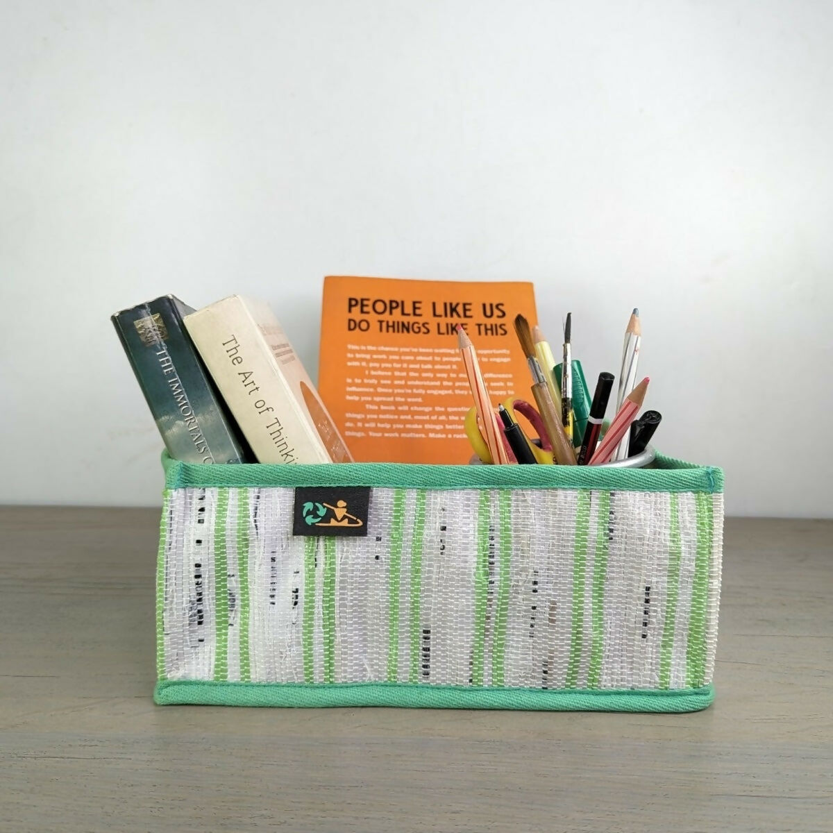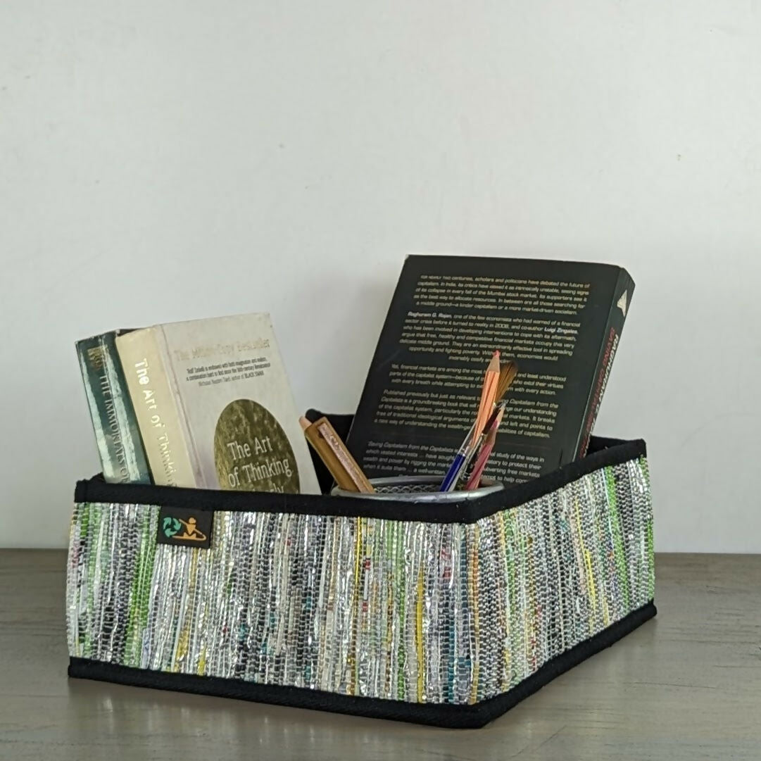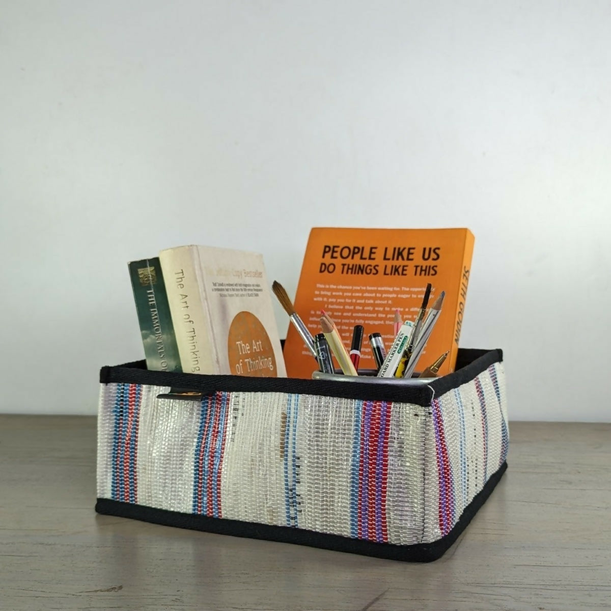 Note: The colors may vary as these products are Upcycled and Handwoven from Waste plastics bags and wrappers using Charkha (Spindle) and Handloom. However, the structure, fit and finish of the product is as shown in the image. Our team will contact you to check for your choice of colour as per availability.