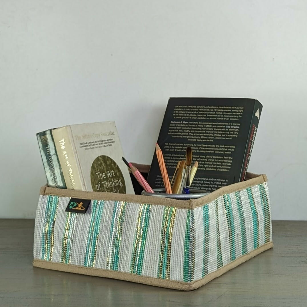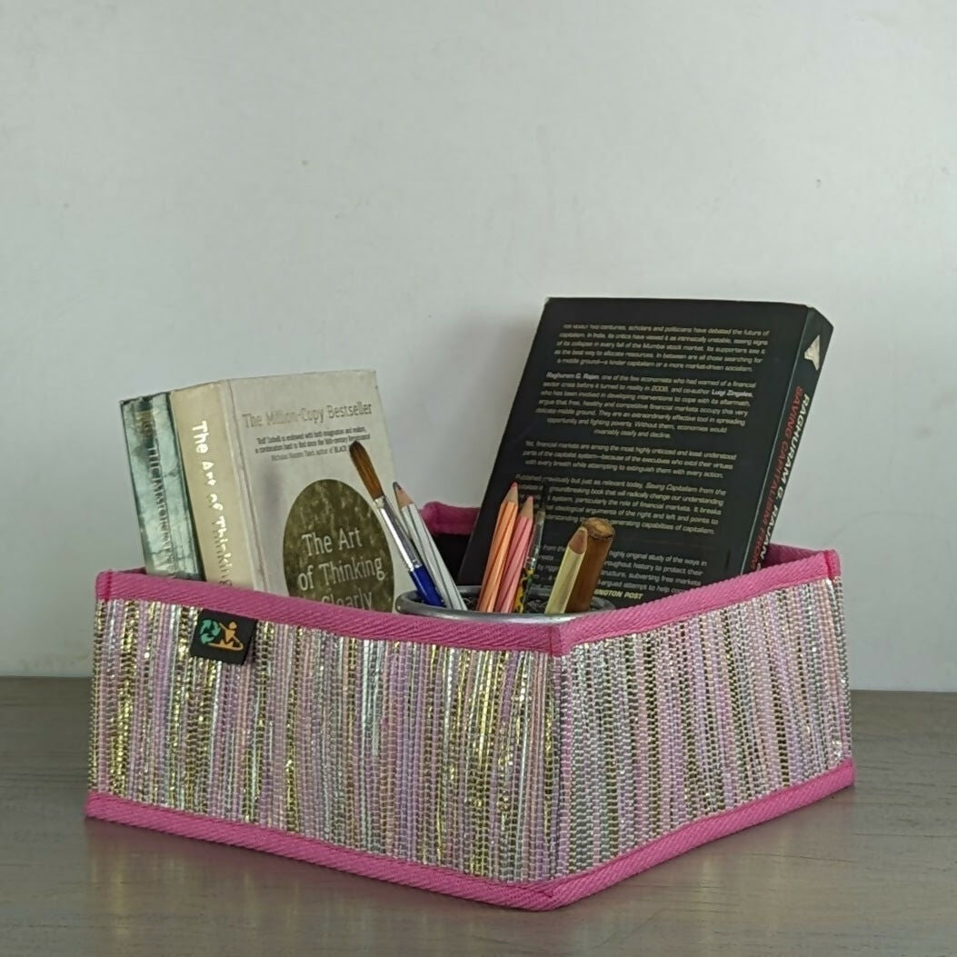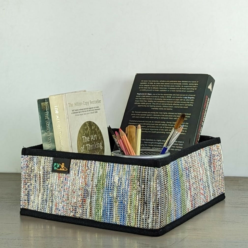 Get more ORGANIZED with our Upcycled Handwoven Portable Storage Tray!During your travel, this small storage tray can be carried along to keep accessories in place!