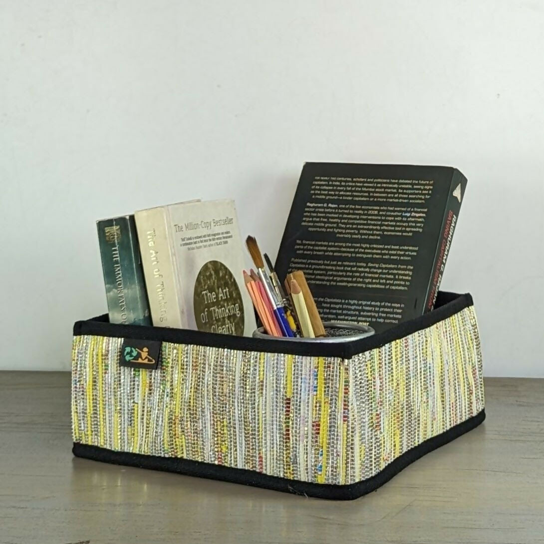 Upcycled Handwoven: Collapsible Storage Basket Small