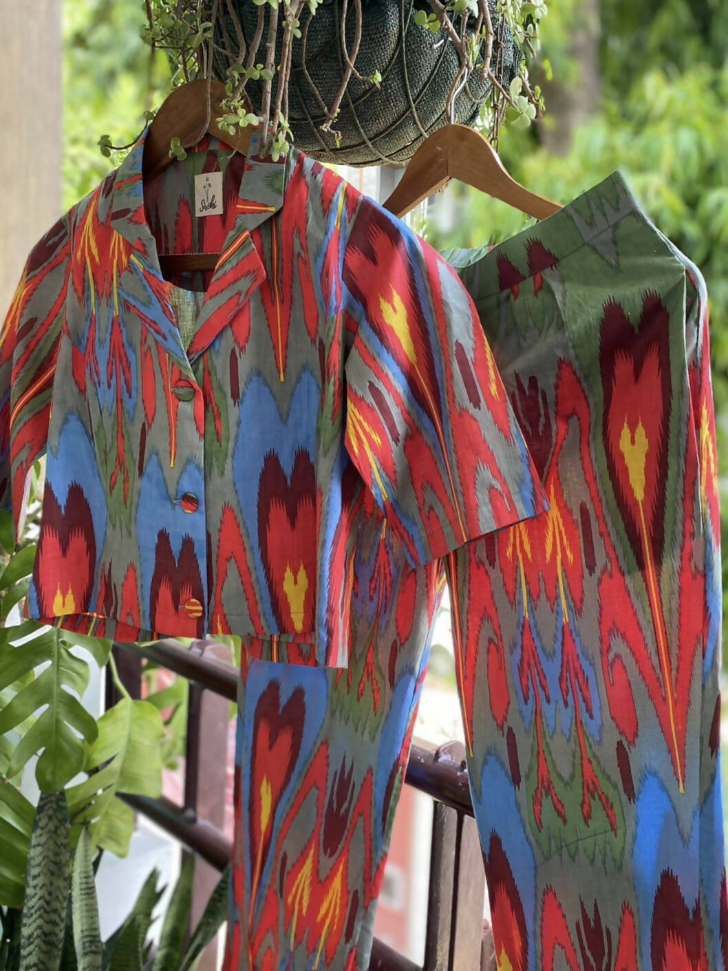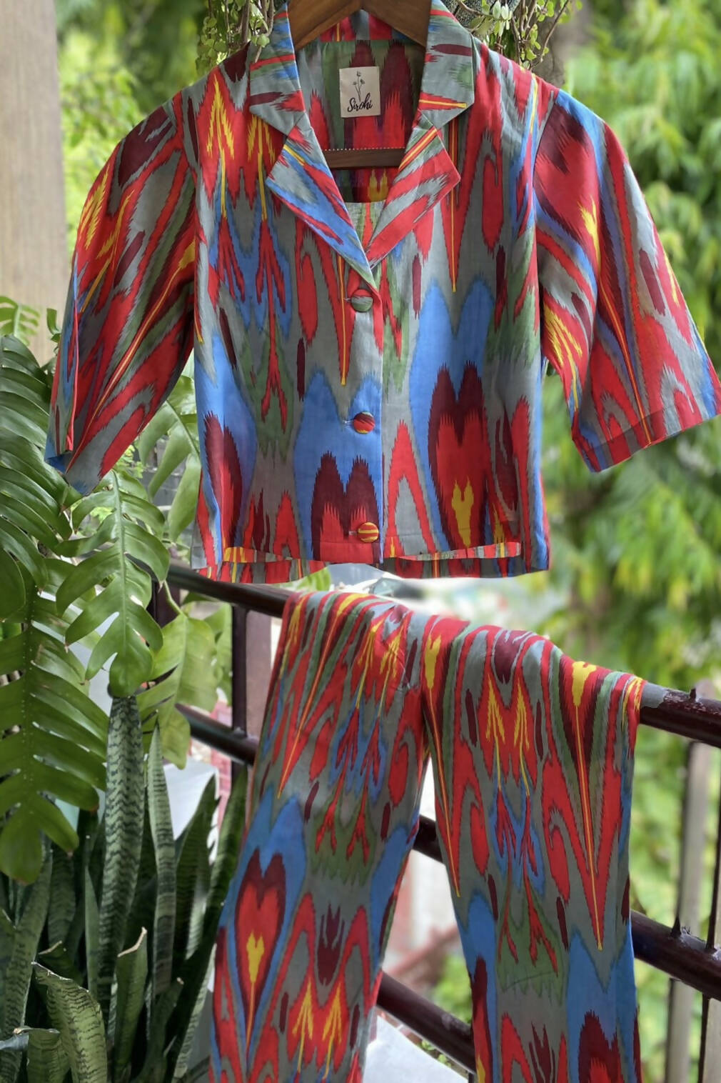 Colour Pop Ikkat Cropped Blazer + Pants Set