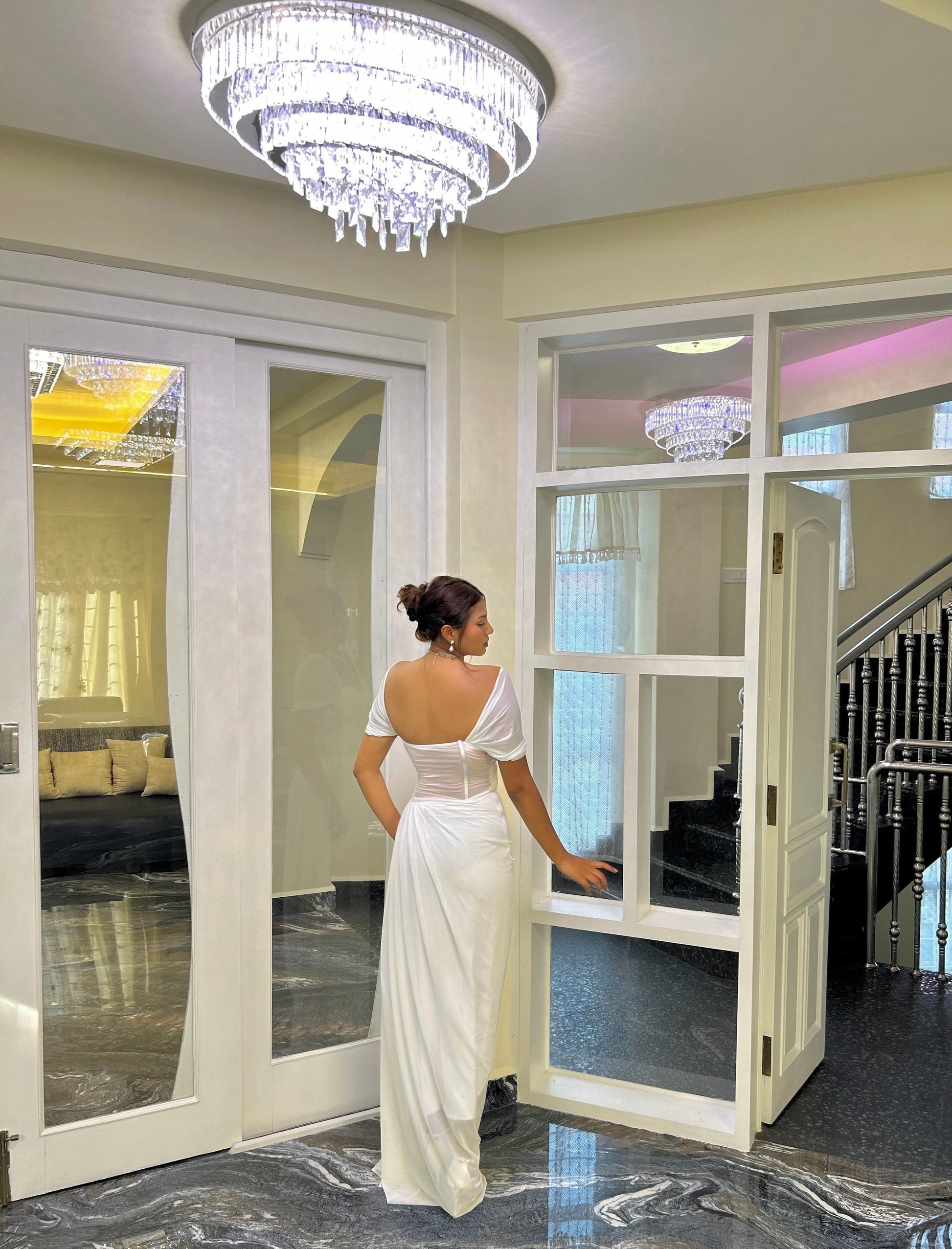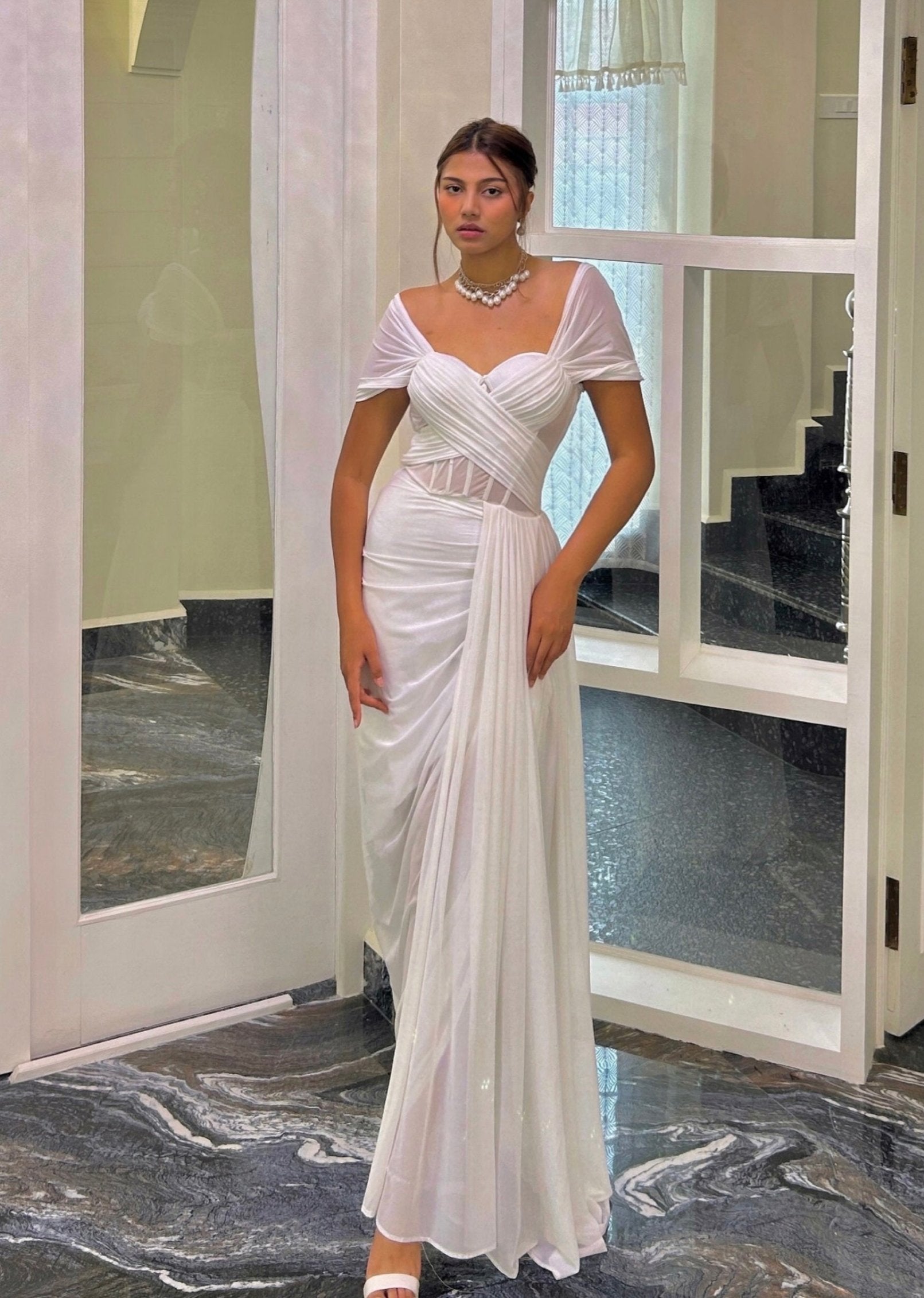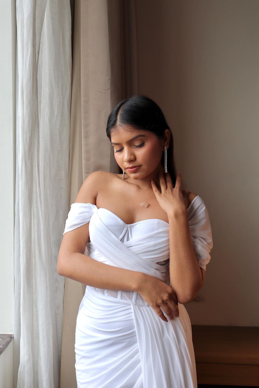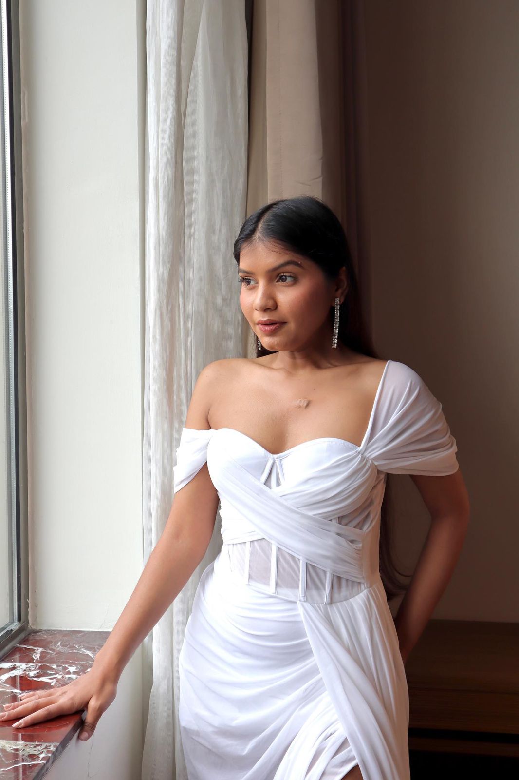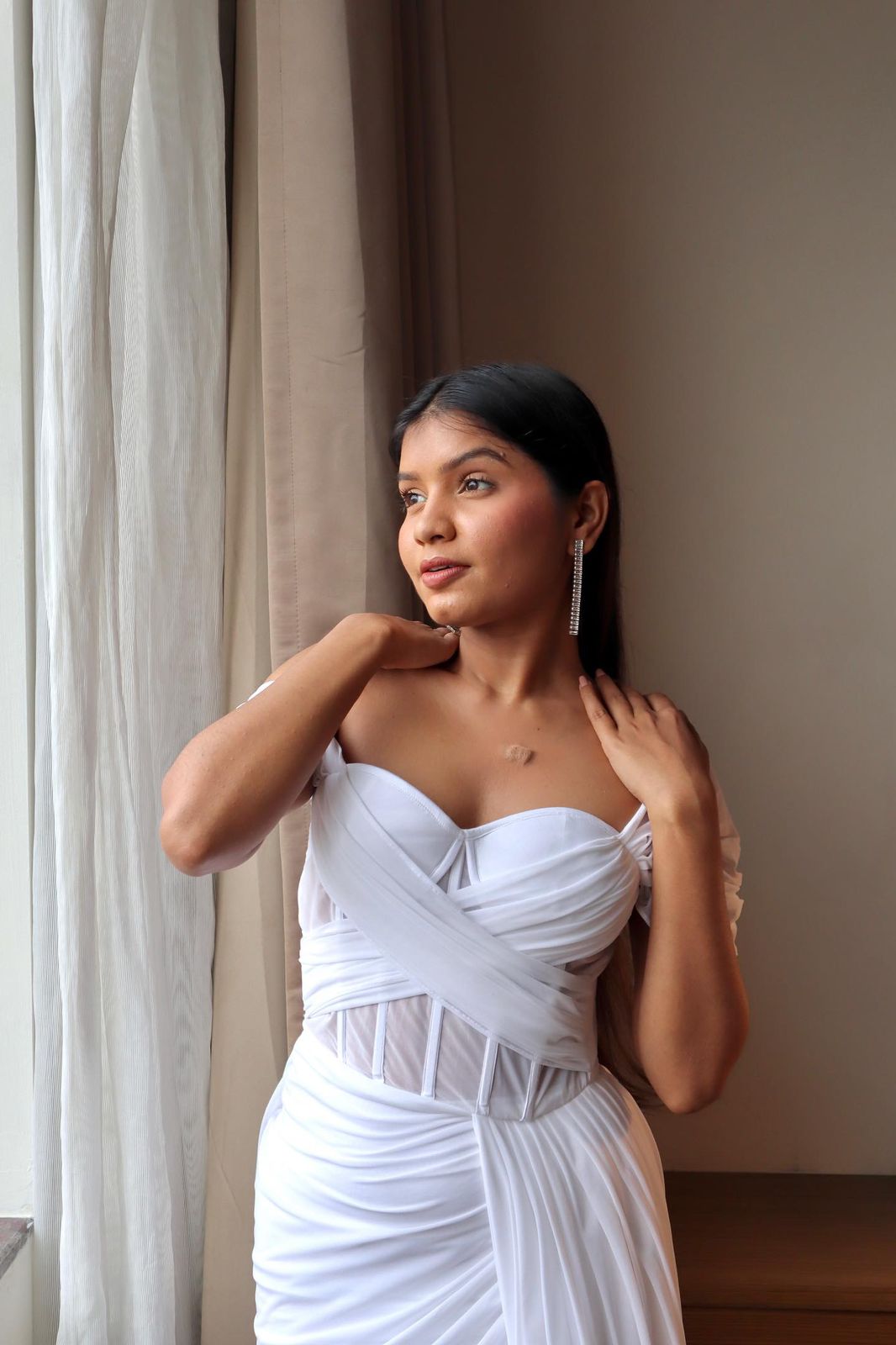 Unveil your inner diva with this chic white dress! Crafted from stretchy fabric and featuring corset boning with padding, it ensures a flawless fit that enhances your silhouette. Perfectly balancing comfort with elegance, this dress is designed to make you shine at any special occasion, blending sophistication with effortless style.