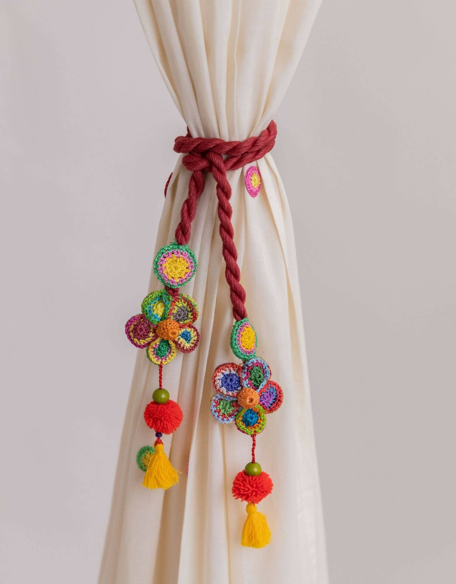 Crochet Curtain Tie Backs Set Kono Multicolour Flower Bead Tassel