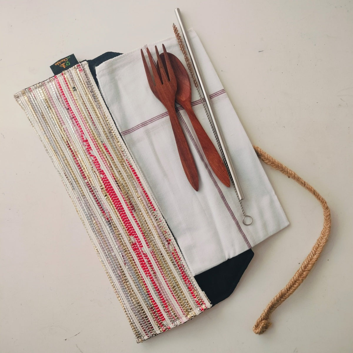 Make reCharkha's UPCYCLED-HANDWOVEN Cutlery Kit an integral part of your bag/tote/bagpack and join us in the mission to end single-use plastic!"It’s only one straw", said 8 billion people?? And that's the reality… Disposable straws and cutlery are used for a few minutes and are sent straight to the landfill, as they are too difficult to collect, segregate and recycle!