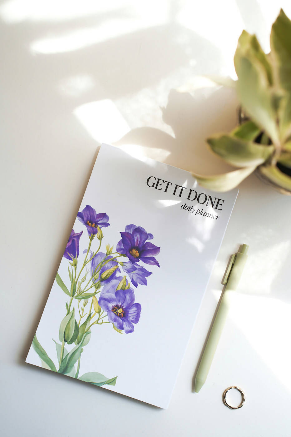 Introducing the Get it Done Daily Planner - the perfect tool for effective planning and time management. This planner is equipped with everything you need to stay on top of your daily tasks and prioritize self-care. Say goodbye to missed deadlines and hello to a fulfilling day, every day.
