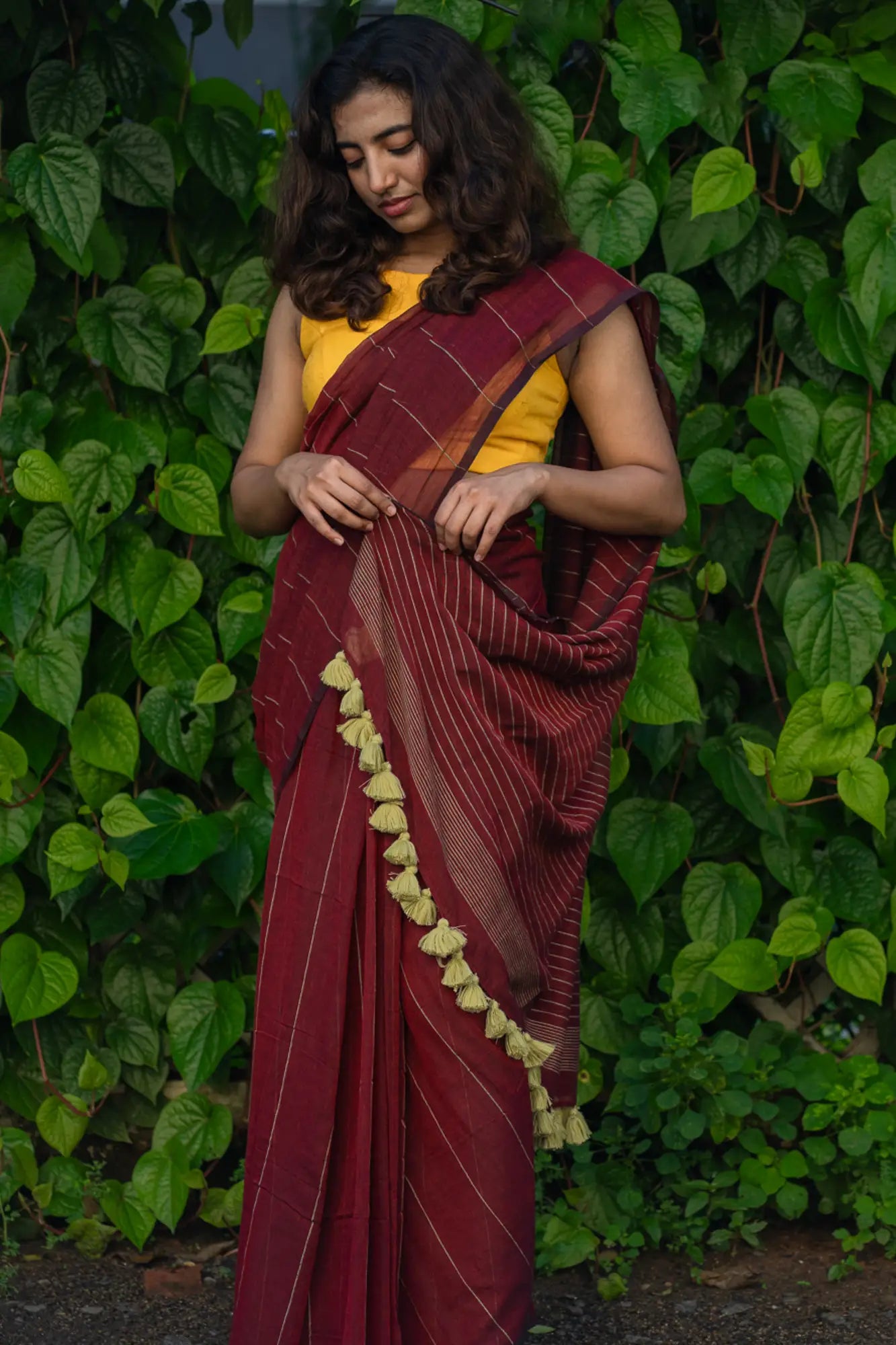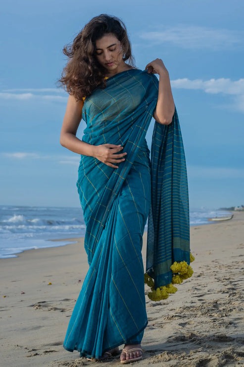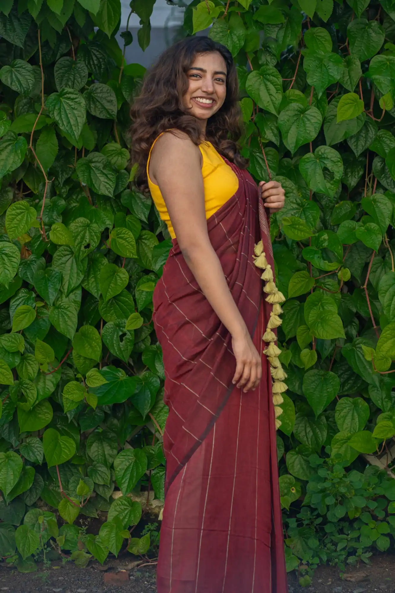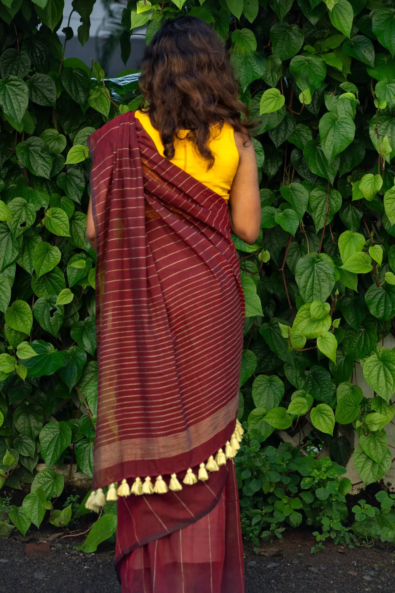 Unleash the hidden power within as you embrace our enchanting Khesh Sarees! Adorned with charming and contrasting accents at the Pallu, these sarees are sure to brighten your day. Prepare to be showered with unexpected compliments, thanks to their impeccable detailing stripes and sustainable nature. You stumbled upon this for a reason, so don't let this slip away!