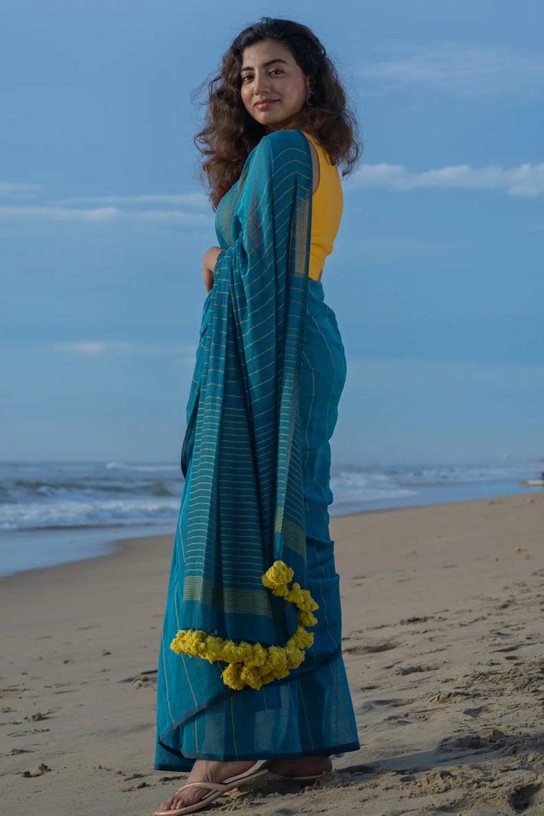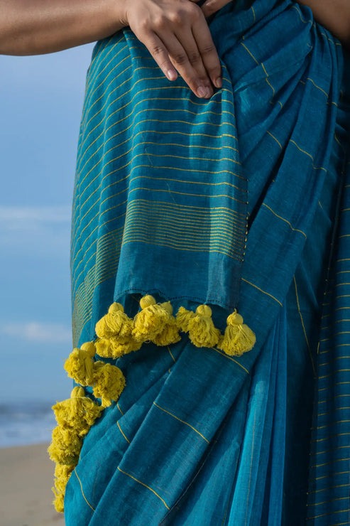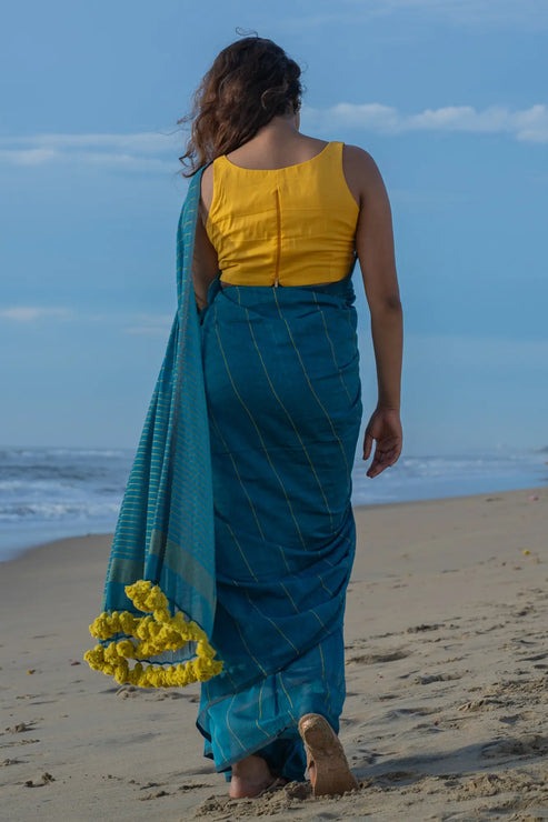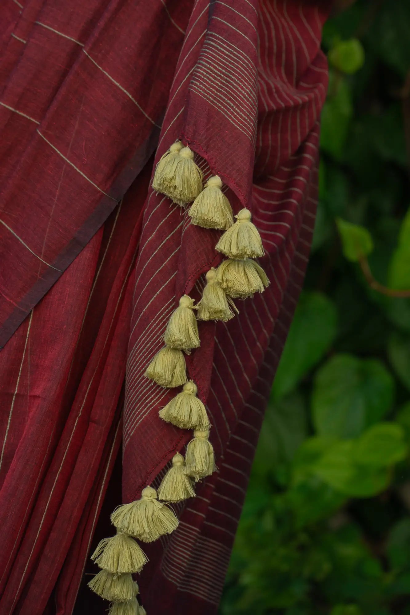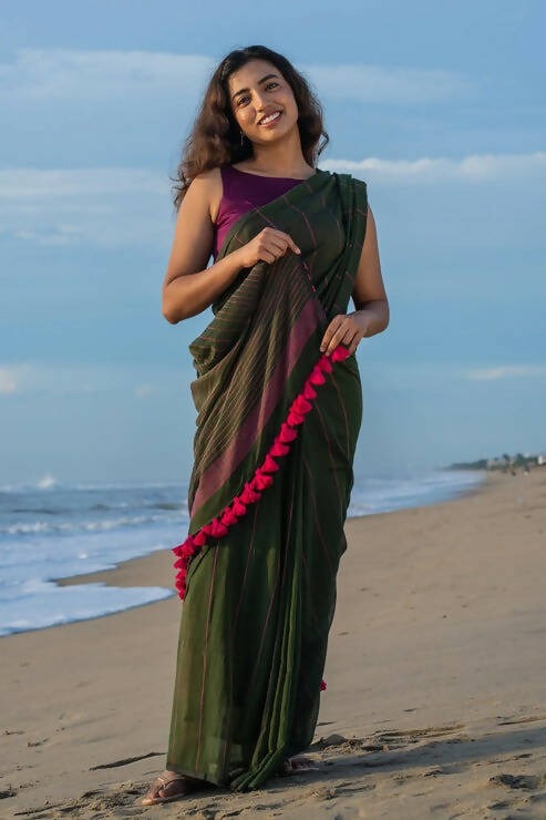 Unleash the hidden power within as you embrace our enchanting Khesh Sarees! Adorned with charming and contrasting accents at the Pallu, these sarees are sure to brighten your day. Prepare to be showered with unexpected compliments, thanks to their impeccable detailing stripes and sustainable nature. You stumbled upon this for a reason, so don't let this slip away!