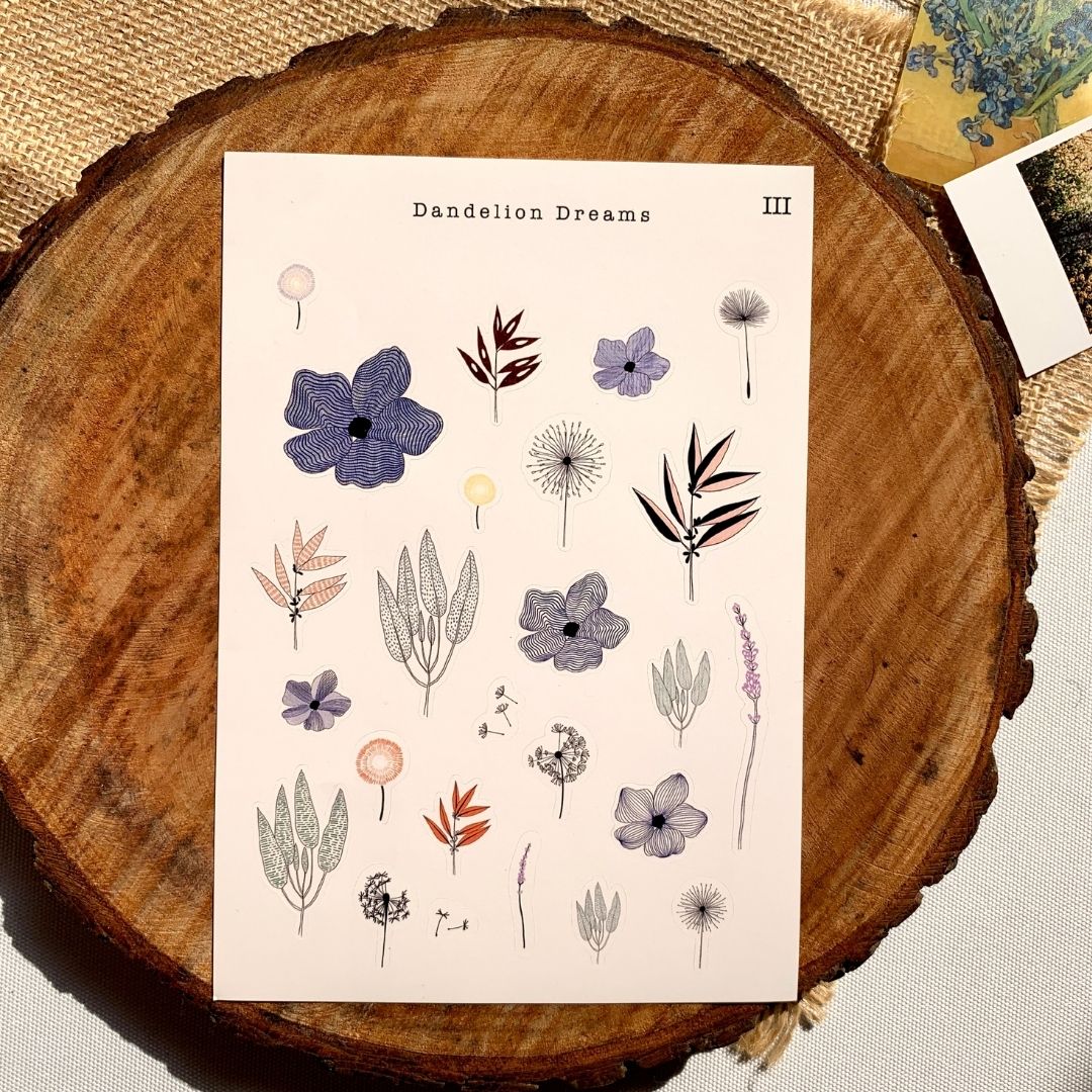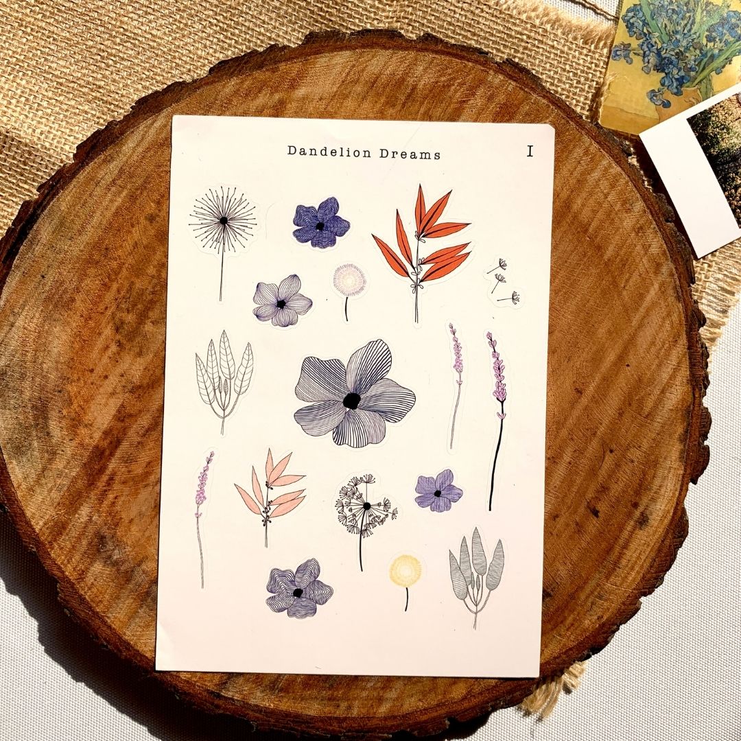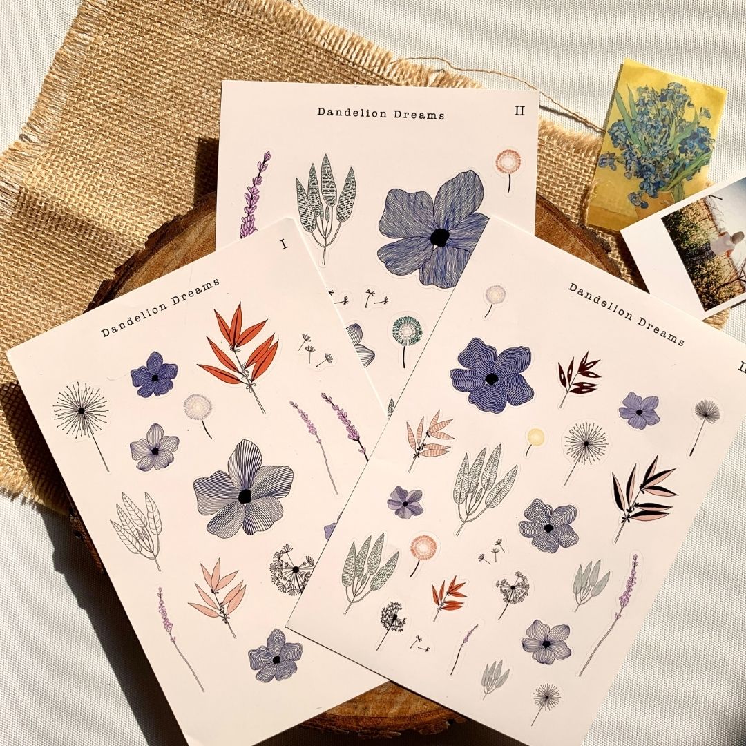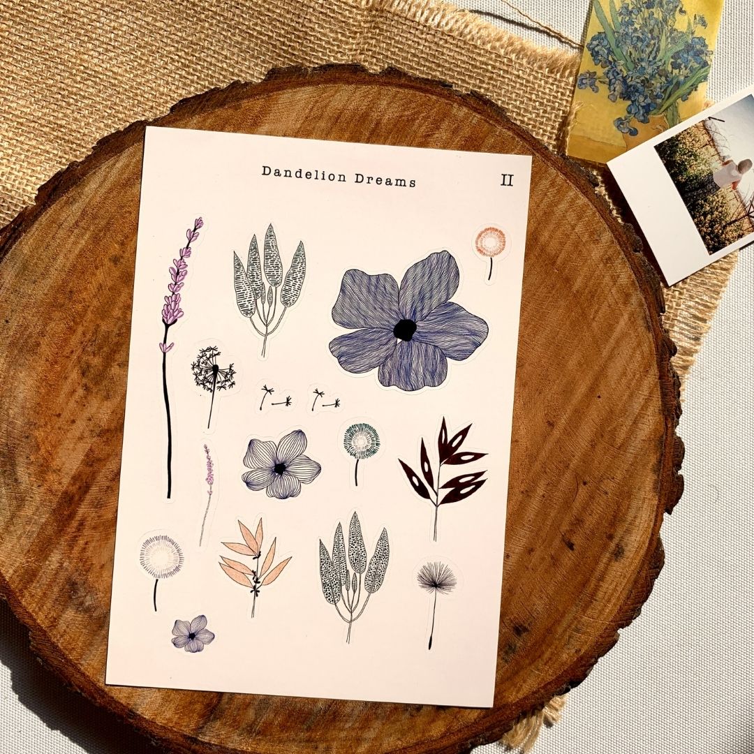We are so thrilled to bring these aesthetic stickers with dandelions and flowers. The stickers vary in size so it can be used in mini journals as well as your A5 ones. They are designed keeping line art in mind.