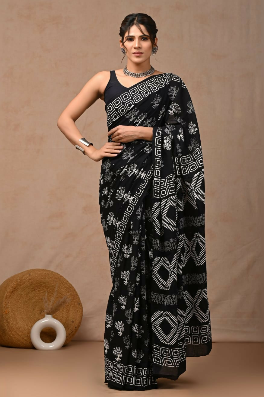 Deep Roots Mul Cotton Ready-To-Wear Pocket Saree