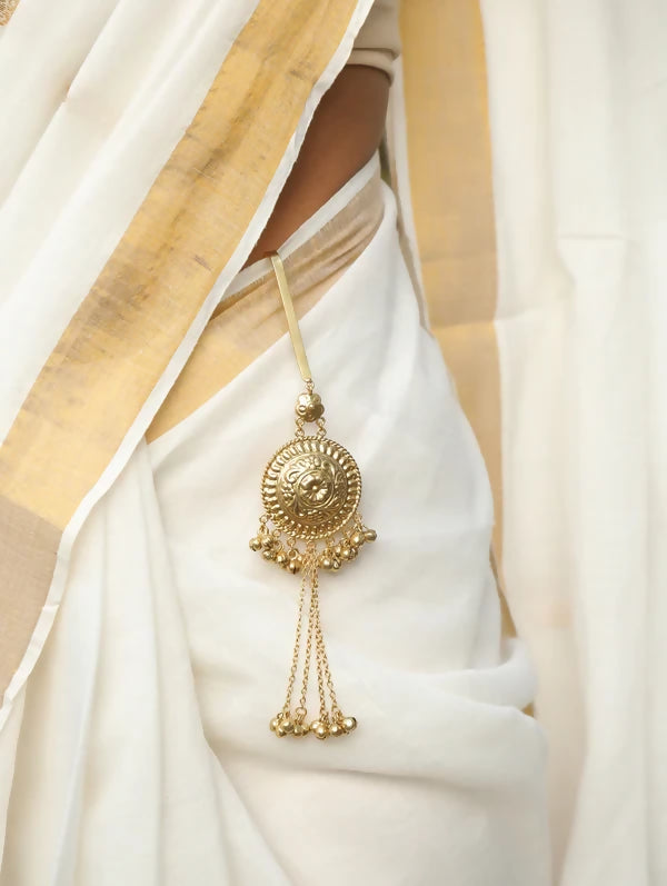 The Demira Chabhi Challa effortlessly marries style and comfort with its lightweight design. Crafted with impeccable Indian craftsmanship, this piece showcases intricate detailing, making it a delicate yet striking accessory that seamlessly blends traditional artistry with contemporary elegance.