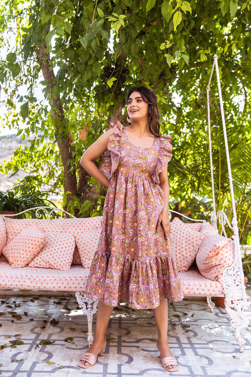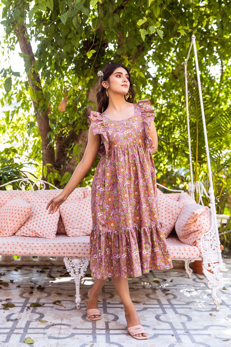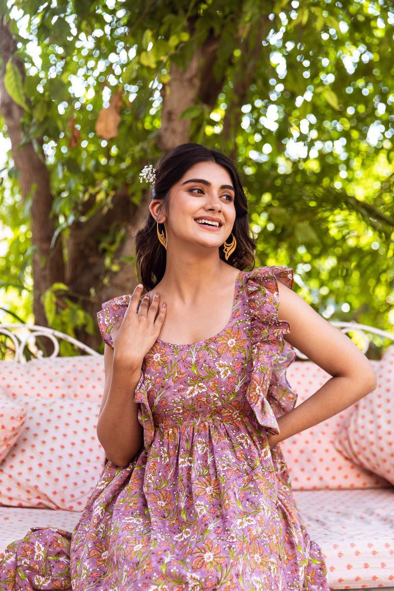 The design of this block printed long dress with make you fall in love with it! A complete head turner, this is the dress of your dreams!