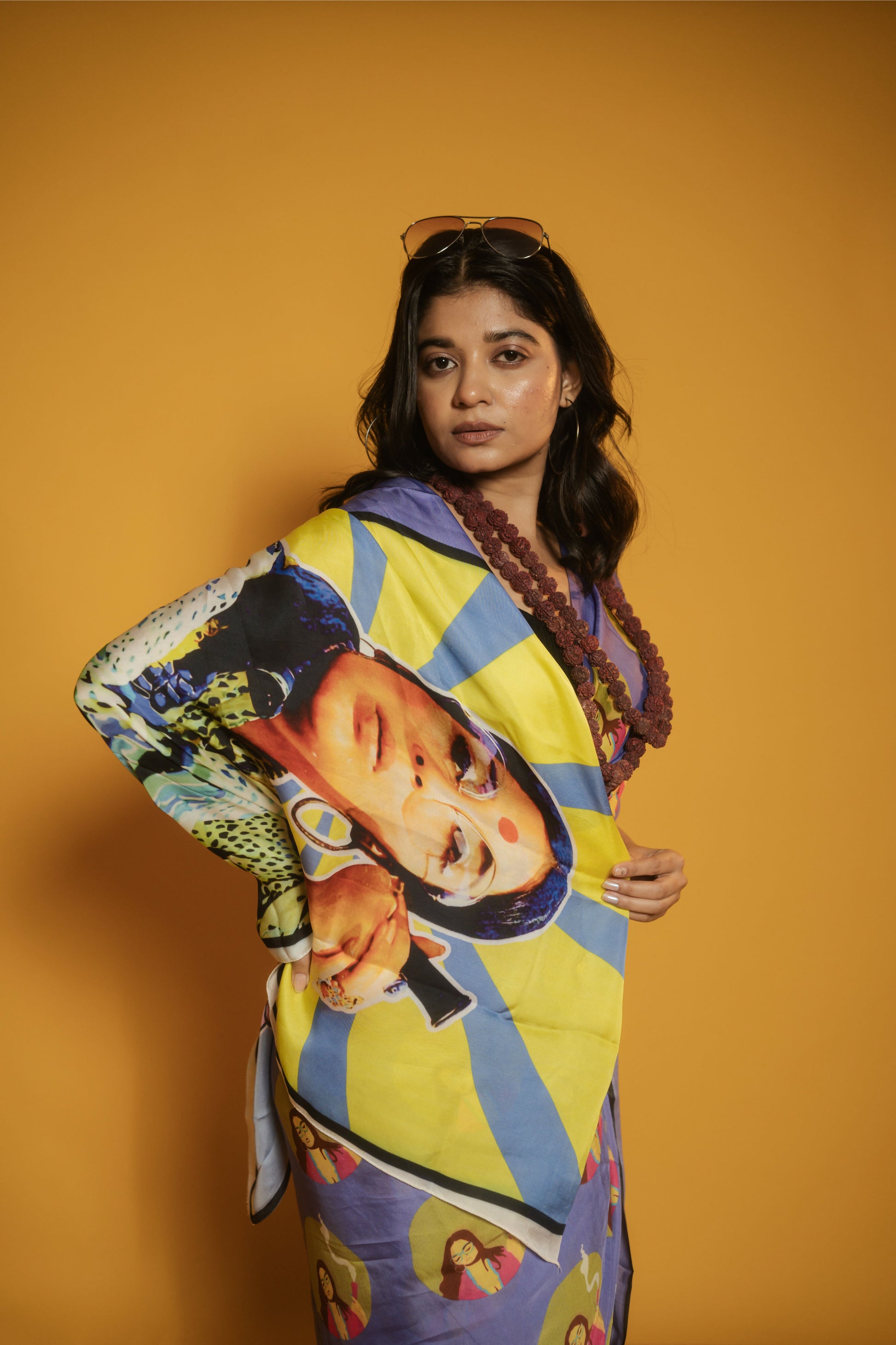 This exquisite Bollywood-inspired saree is the perfect choice for retro-themed parties, designed to make you the center of attention. Crafted from luxurious Tissue, it drapes gracefully, exuding elegance and charm. Embrace your inner Bollywood diva and make a lasting impression with this timeless statement piece.