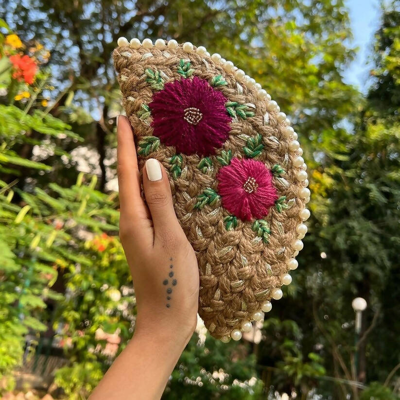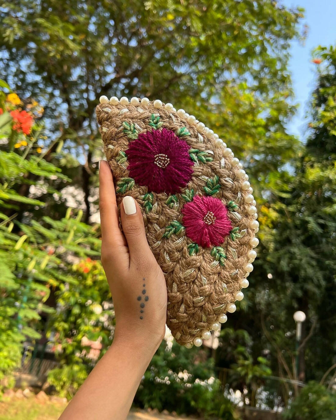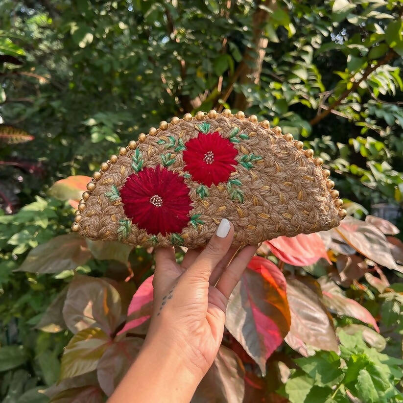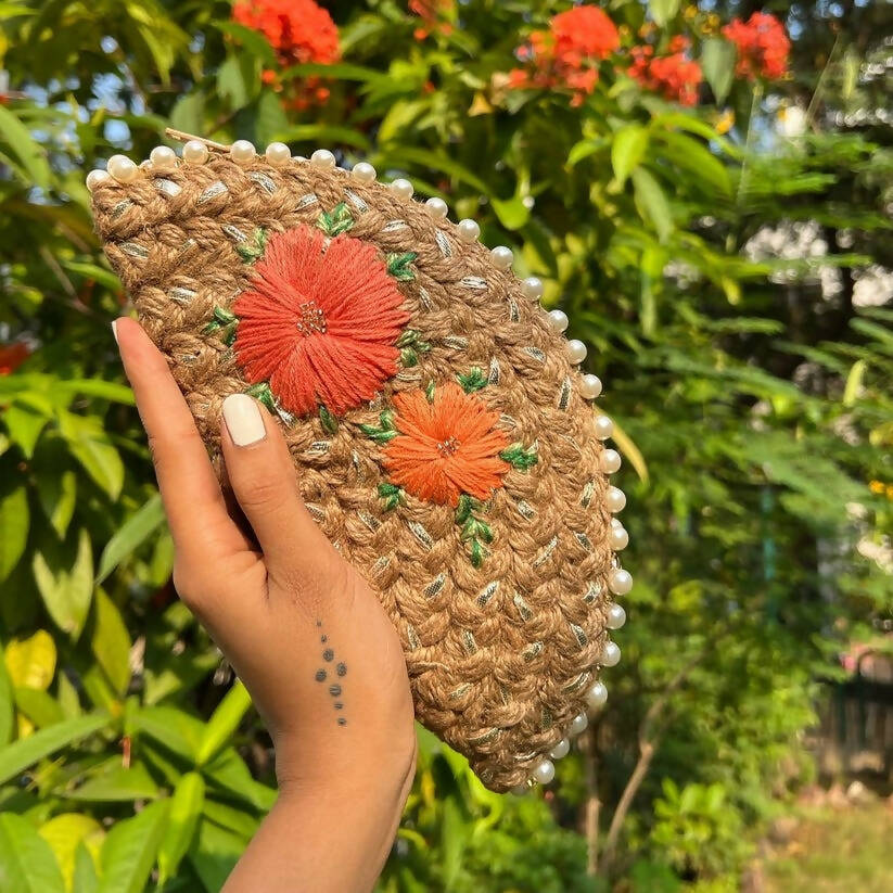 Half Moons with these signature embroidery is so unique and versatile. The bag is handcrafted from a single jute dhaaga (thread) and takes over 10 hours of skilled work to put together this special piece for you.
