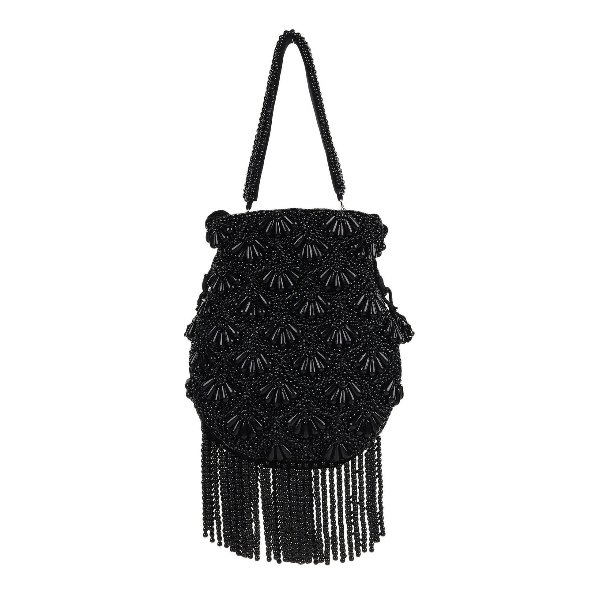 Ebony Pearl Black Velvet Potli Bag