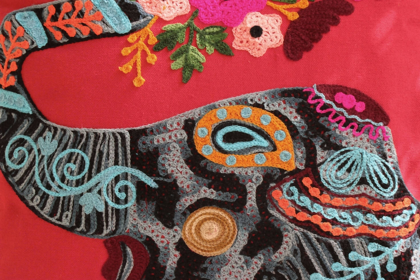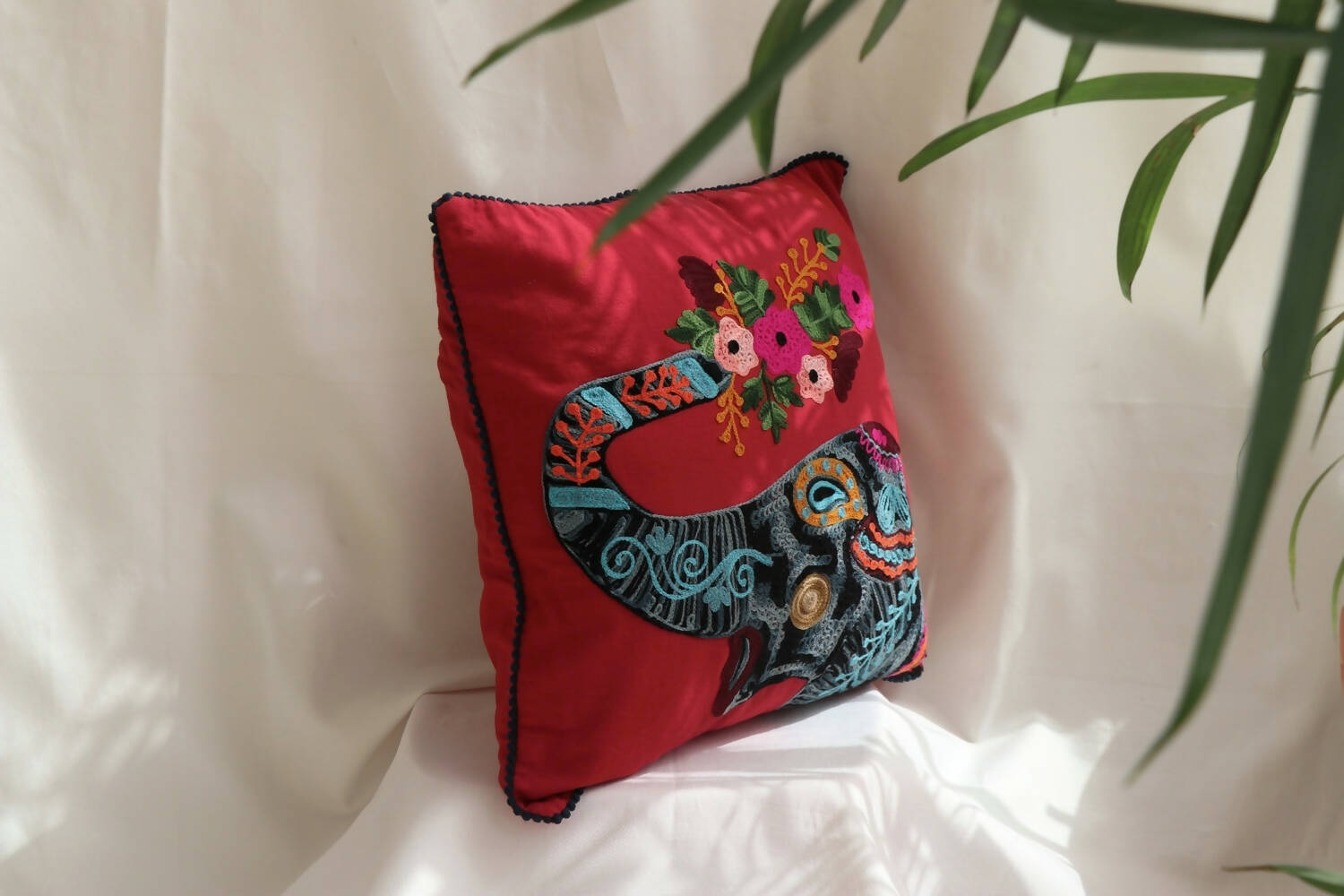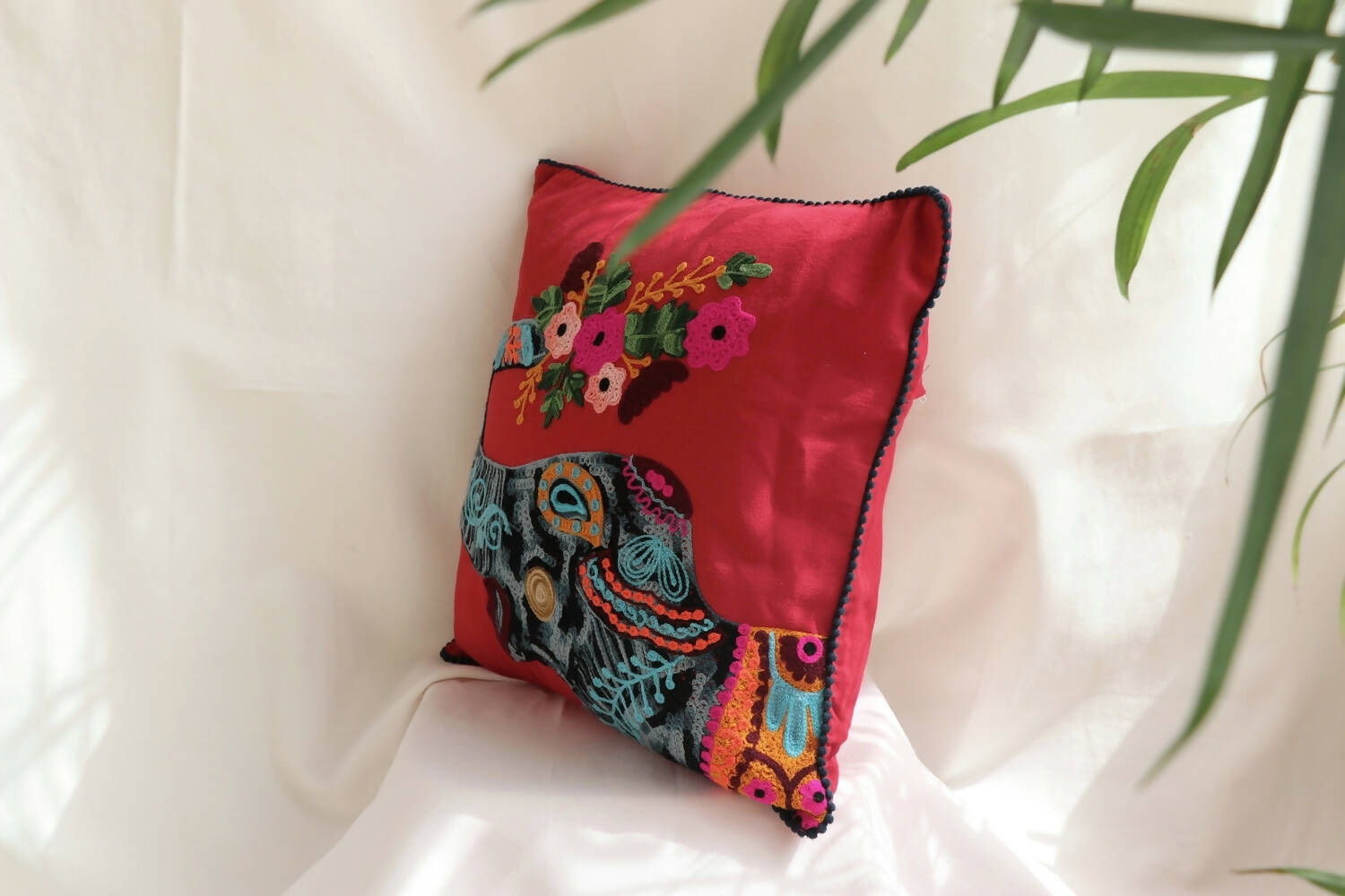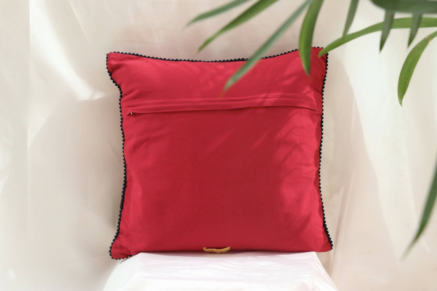 The cushion cover is made with duck cotton fabric, embroidered by local artisans of UP, India.