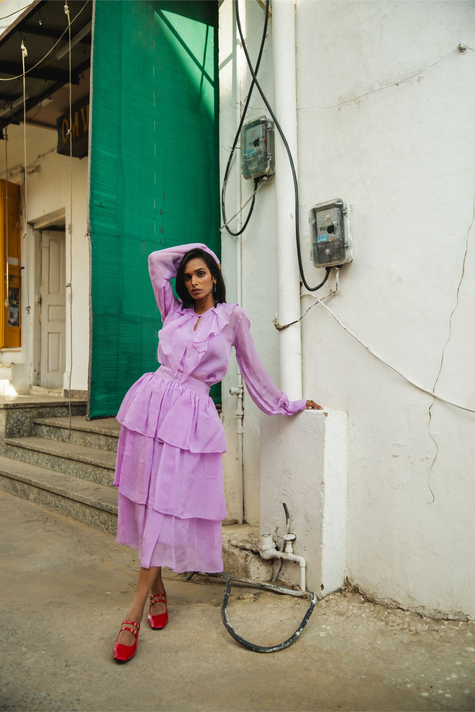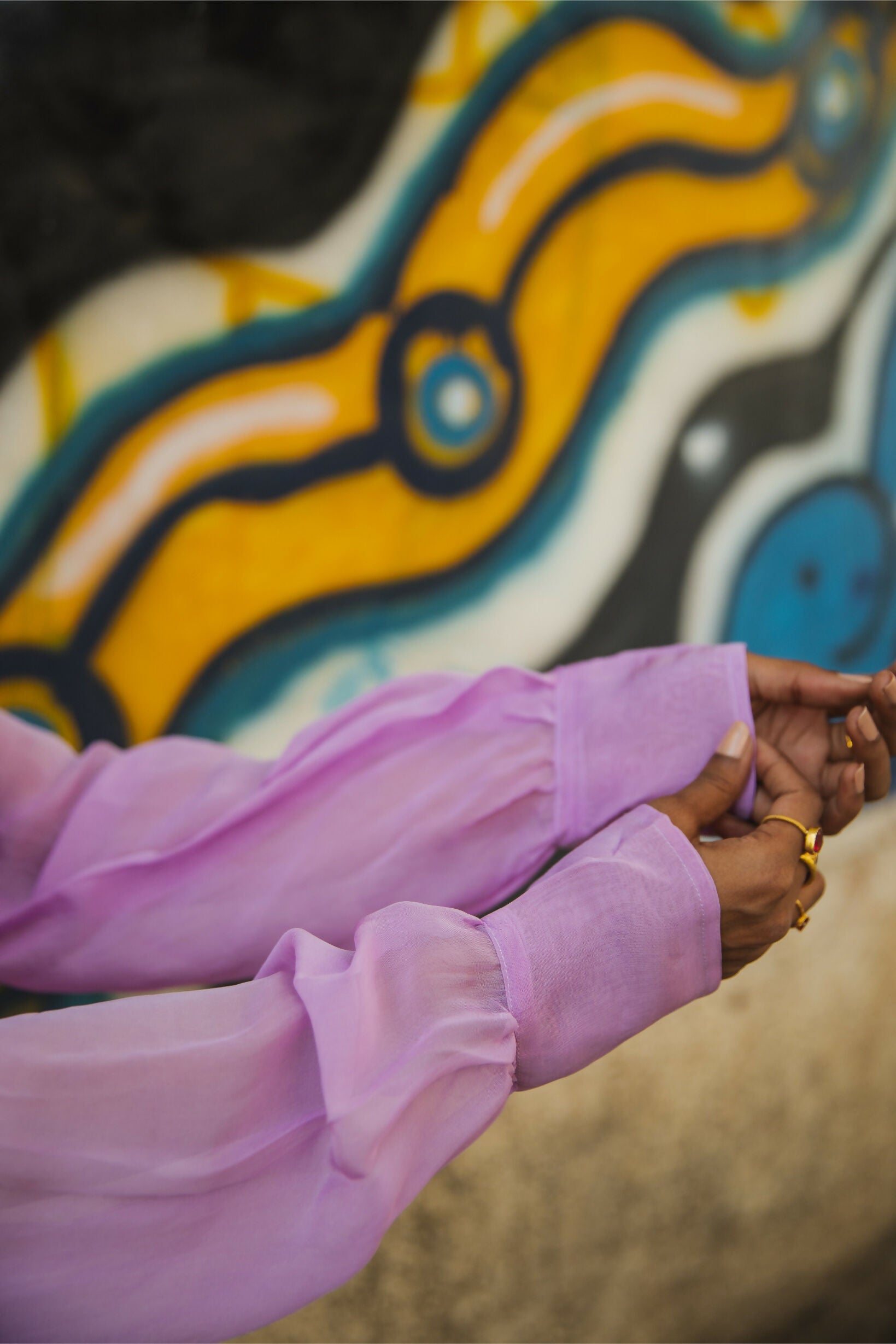 Introducing the Amber Ember Purple Organza Shirt crafted from exceptionally soft organza, showcases a rich purple hue that embodies sophistication and elegance. The Amber Ember shirt is a perfect blend of comfort and style, making it an ideal choice for any fashion-forward wardrobe.