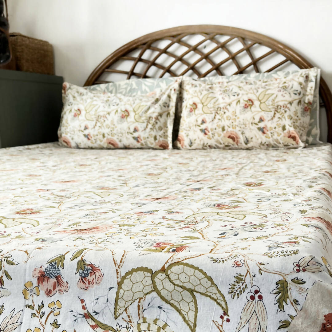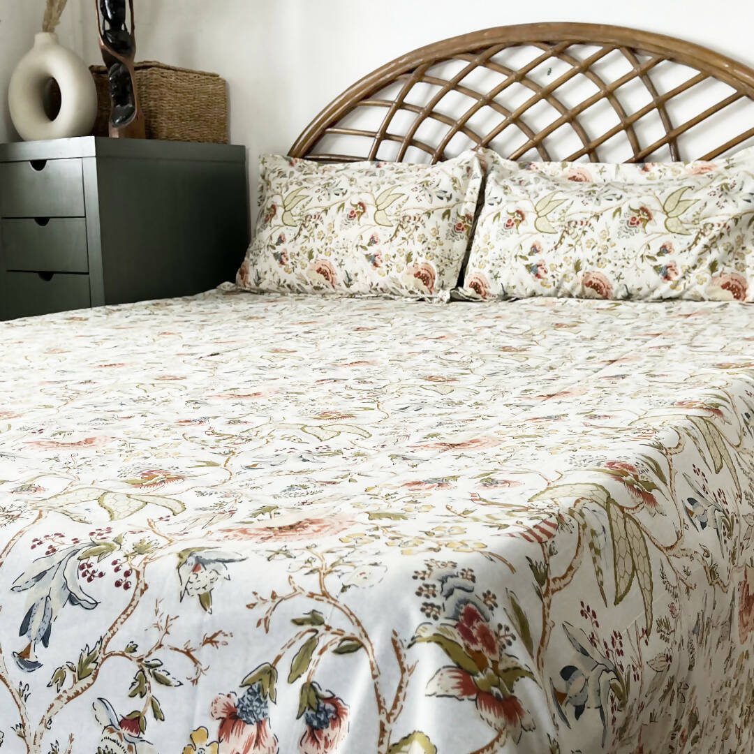 Enchanted Garden All over Printed King Sized Bedsheet Set