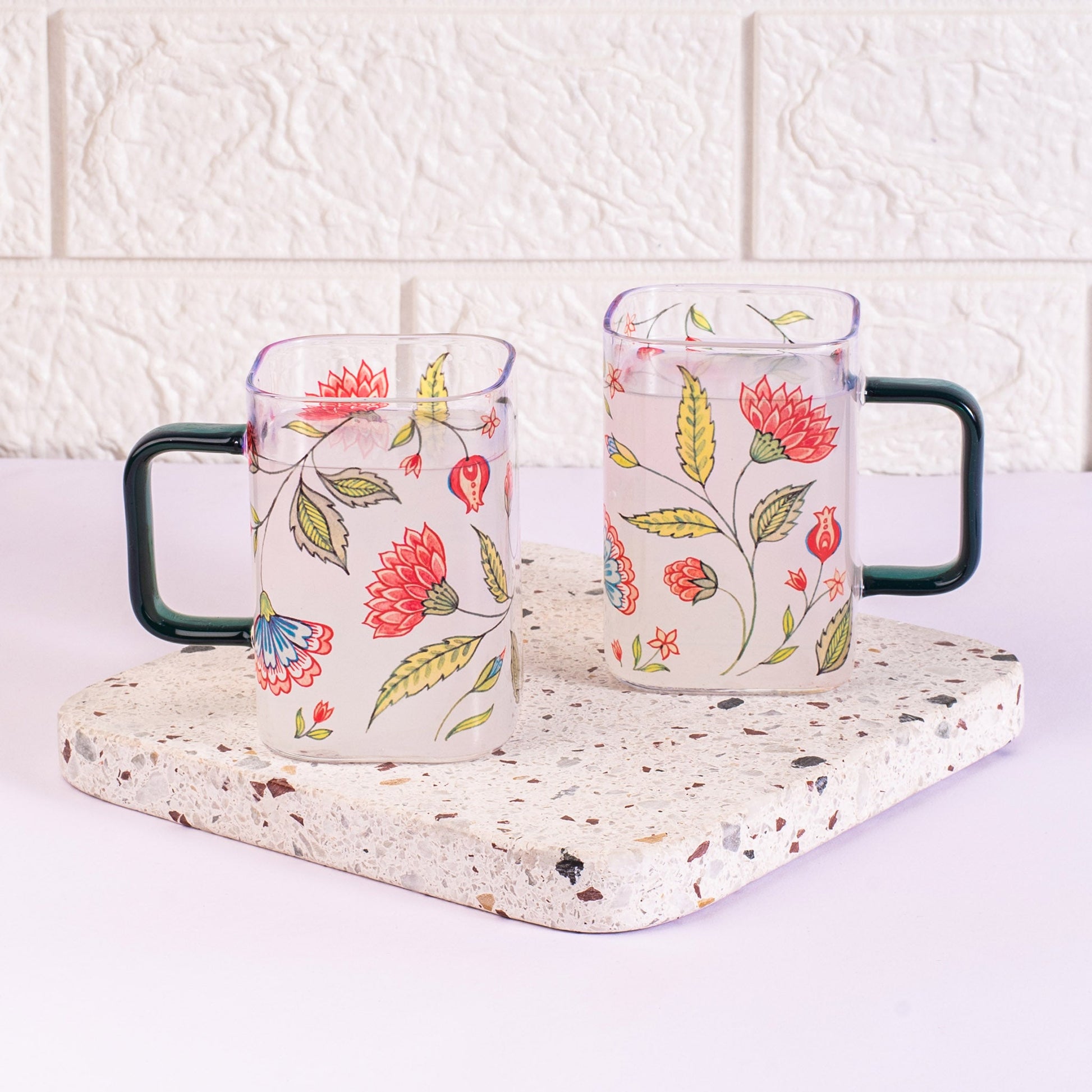 The Enchanted Garden Square Coffee/Tea mugs showcasing dainty floral illustrations are an absolute must-have and a perfect addition to your drinkware collection. Made with high quality borosilicate glass, these mugs ooze with elegance and also make the perfect gift for your loved ones!