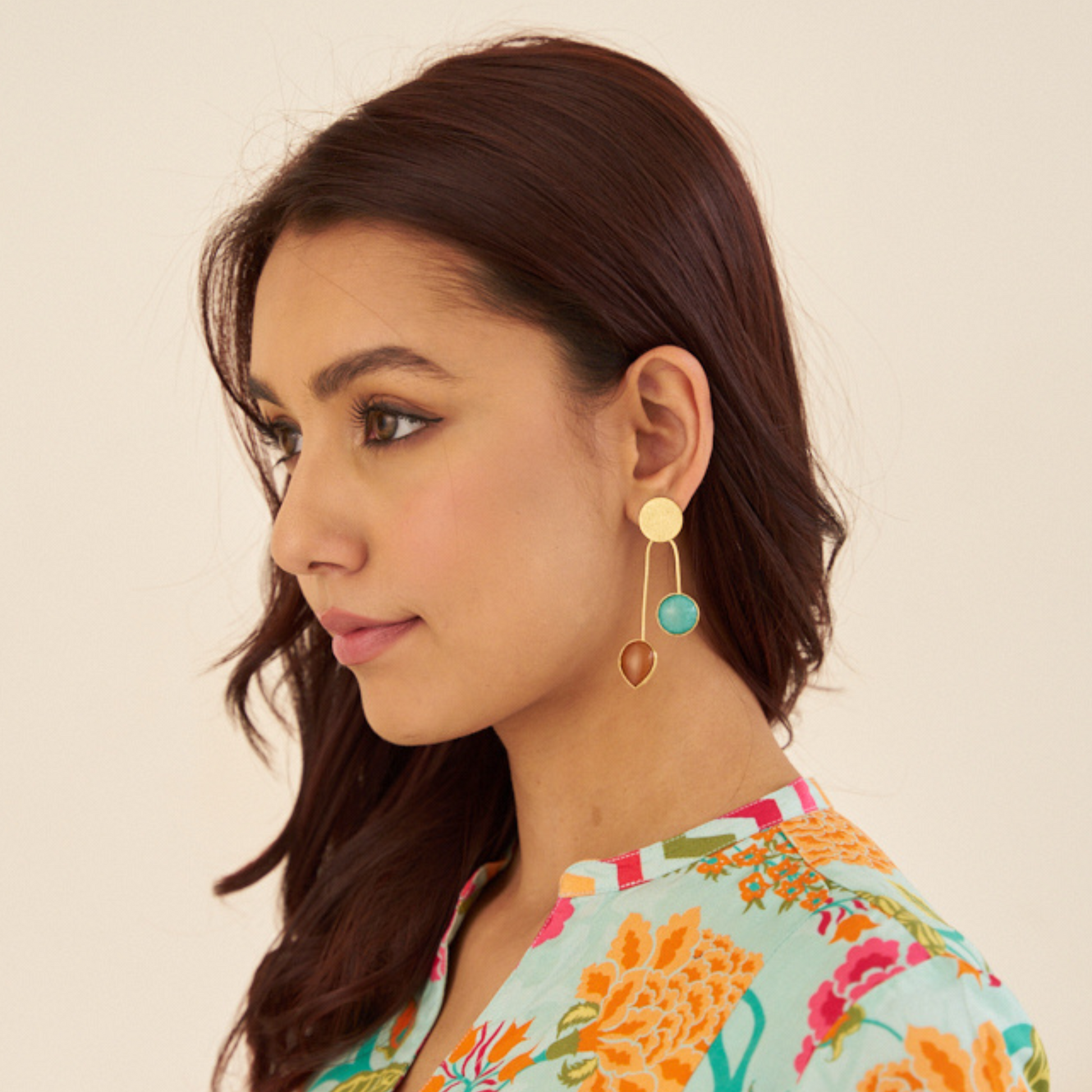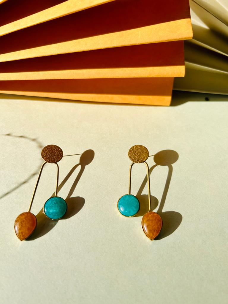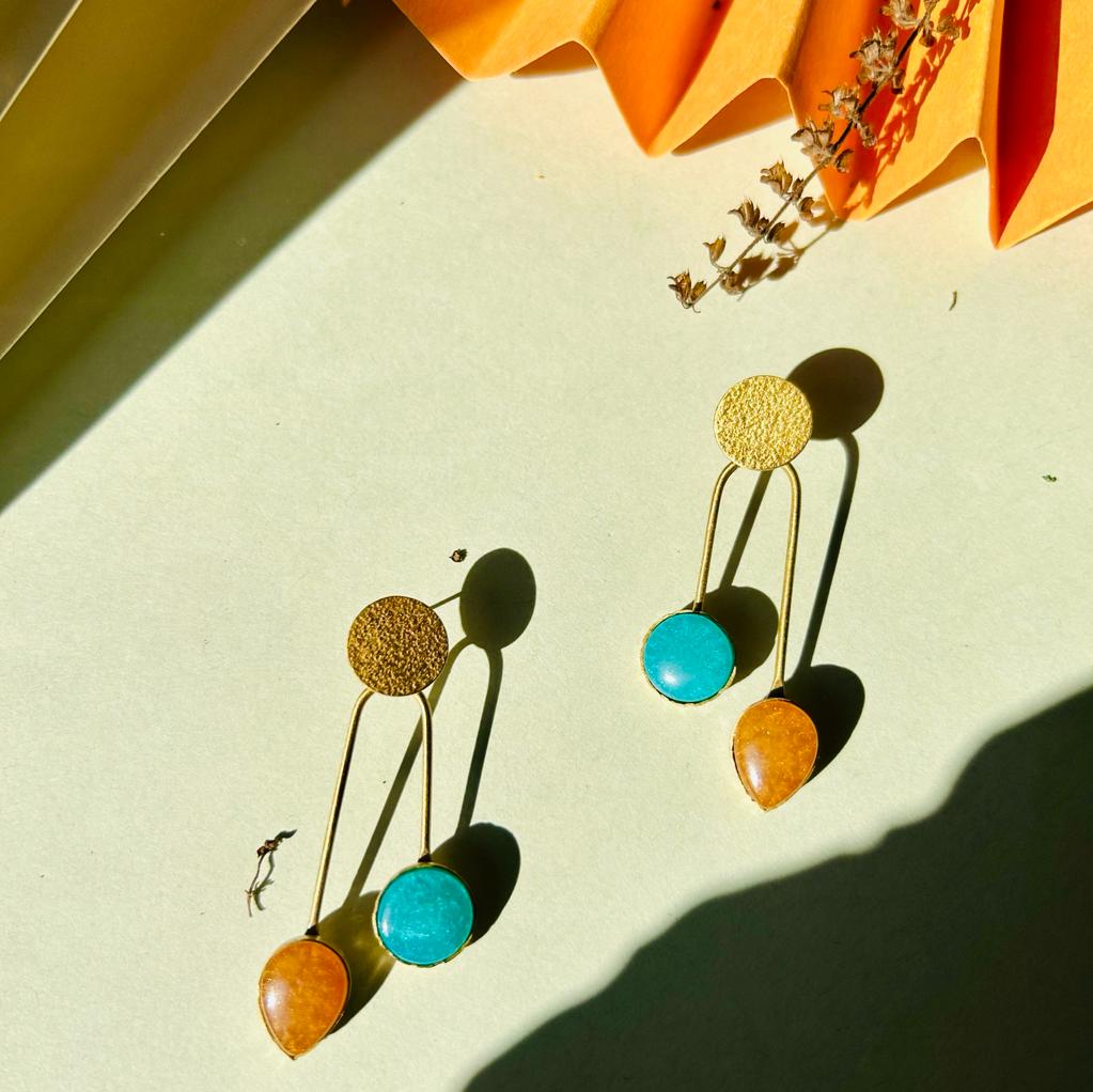 Elegant brass earrings with colourfull stones to add that subtle pop of colour. Get our limited collection of gold plated brass earrings today.