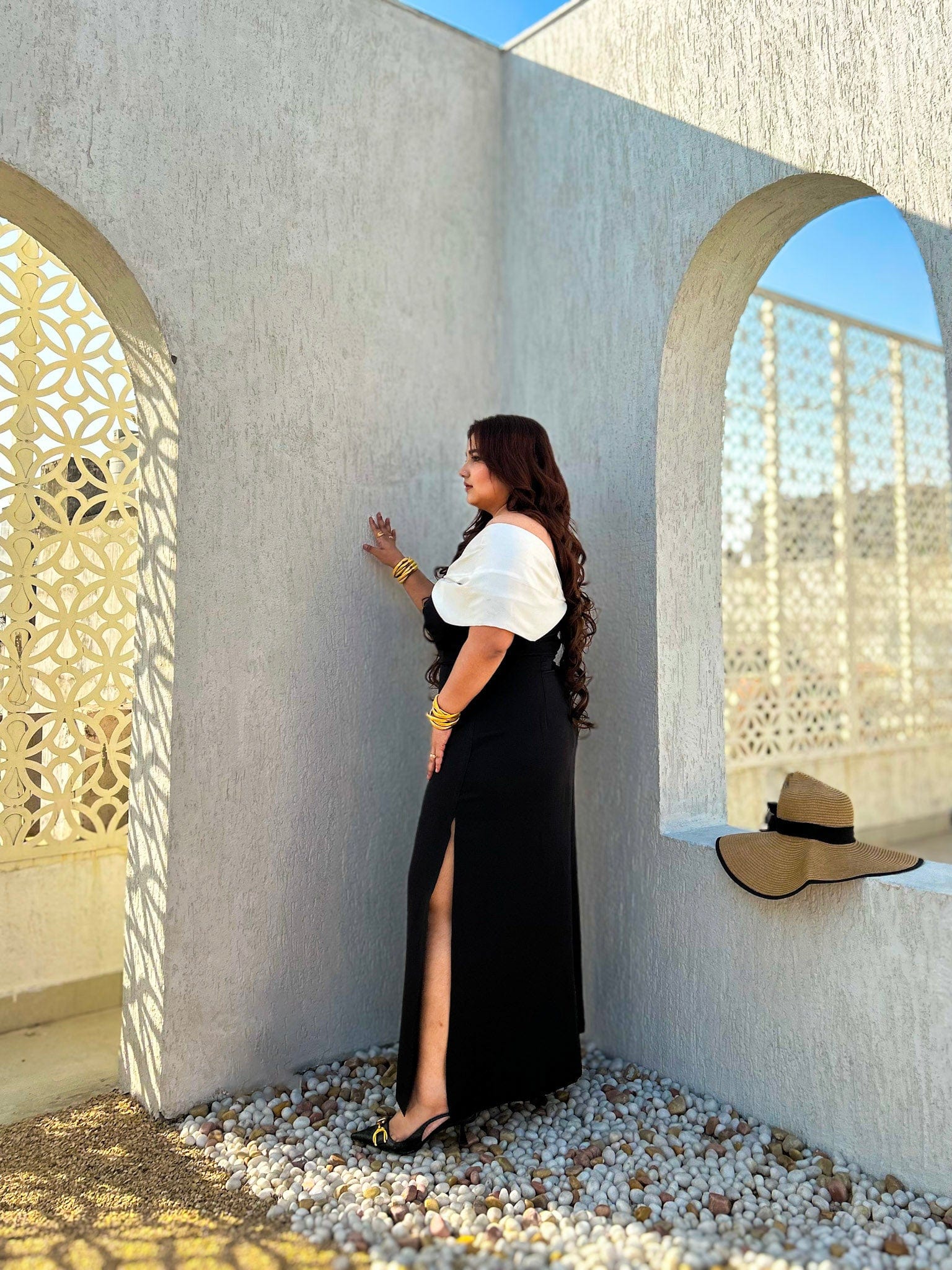 The Eterna dress is a timeless masterpiece that blends grace and boldness in perfect harmony. Featuring a sleek column silhouette with a daring thigh-high slit and a dramatic off-shoulder drape, this black dress is designed for the woman who commands attention effortlessly. The minimalist elegance of Eterna makes it a standout choice for special occasions, embodying sophistication and empowerment in every detail. This dress is a celebration of confidence and individuality, crafted to make you feel unstoppable.