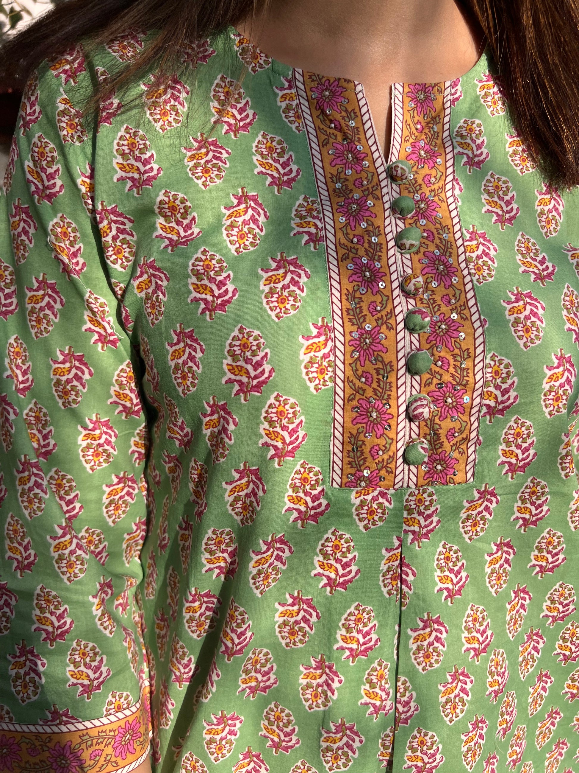 Ethnic Motifs Printed Sequinned Pure Cotton Kurti