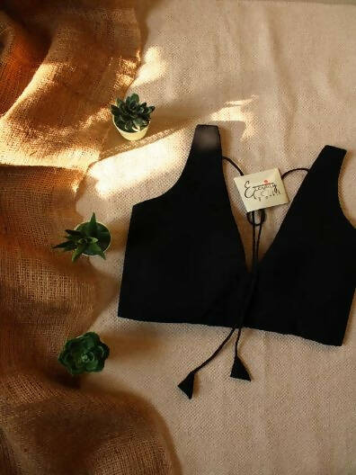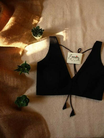 This beautiful Cotton blouse features a back closure and is sleeveless.
