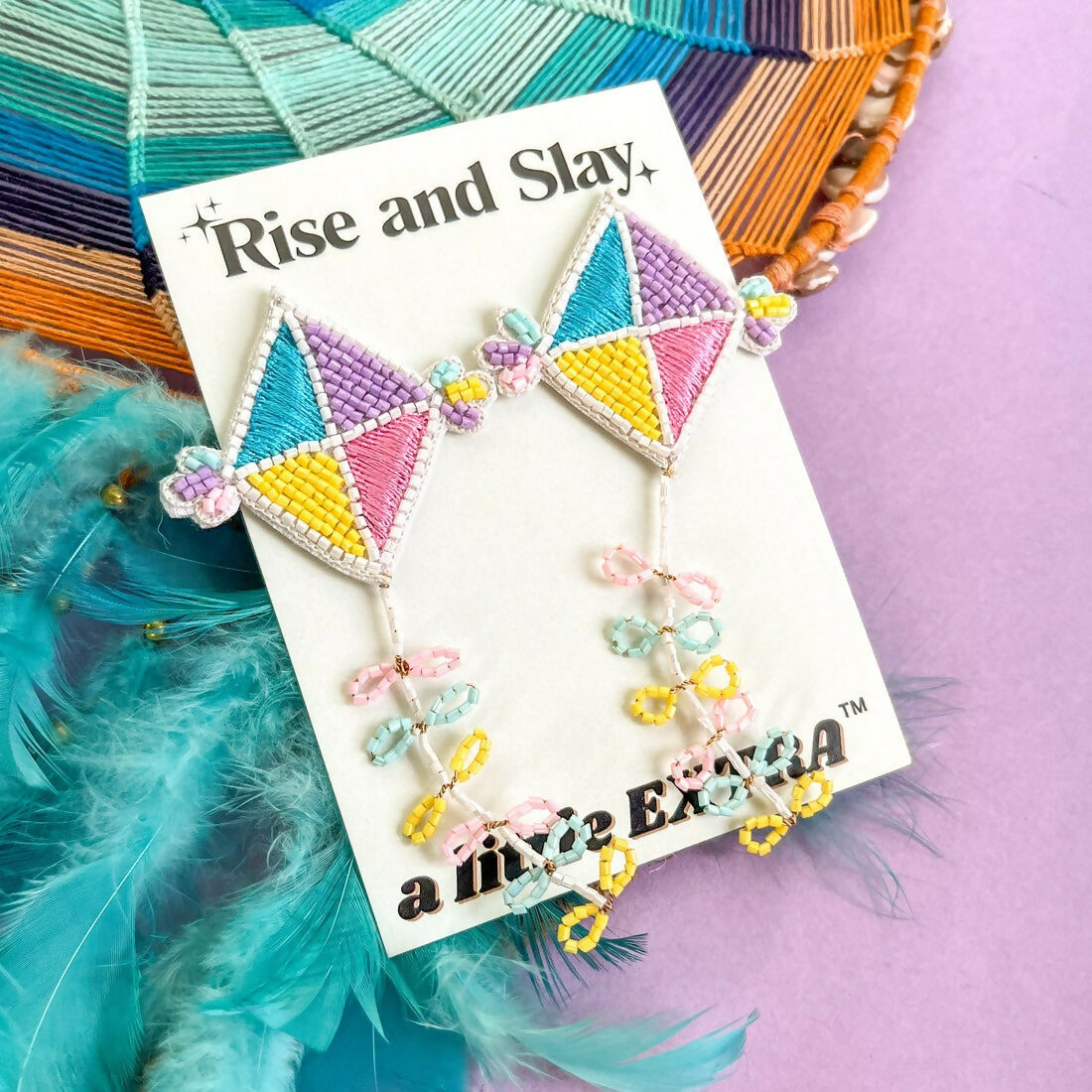 Made from cut Dana beads and Resham, they're lightweight (just like a patang!) and perfect for everyday wear, making them a summer essential. These earrings are versatile enough to pair with any summer outfit, whether you're hitting the beach or strolling through the city.