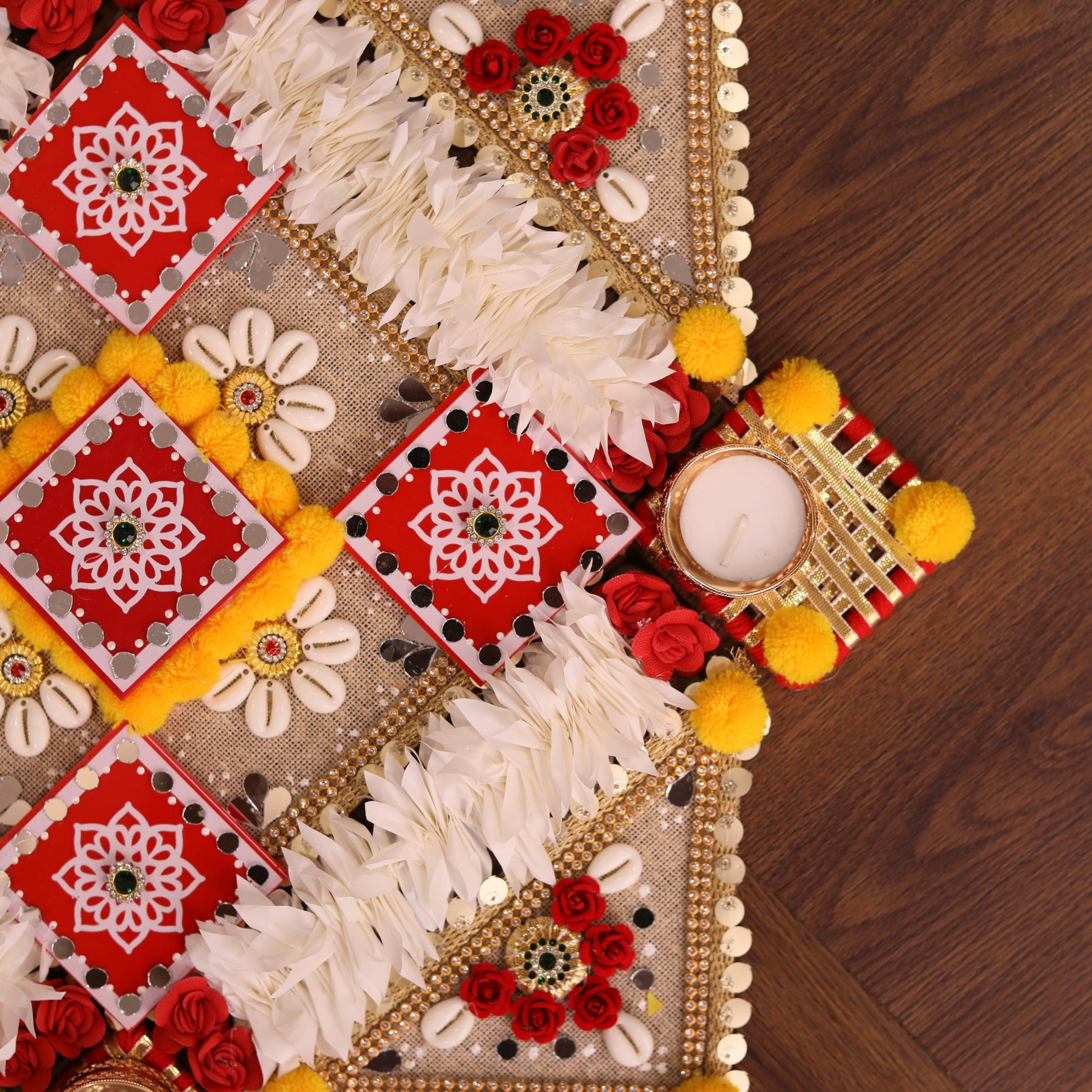 pearls, beads, Kundan, shimmering lace patterns, and much more. You can include these rangolis in your Diwali gift hampers and presents. Pick your favourite from our durable and handy rangolis.