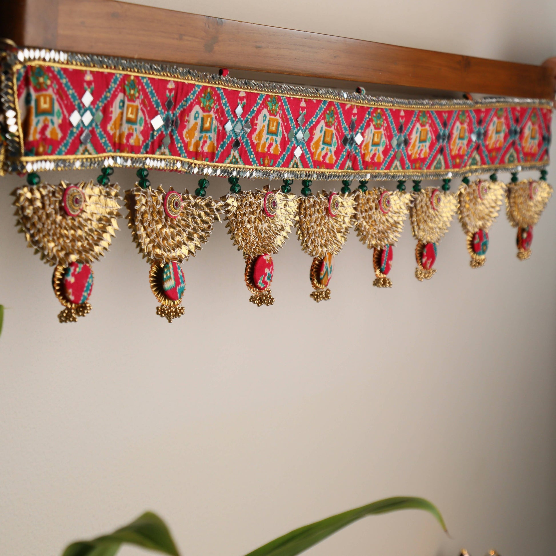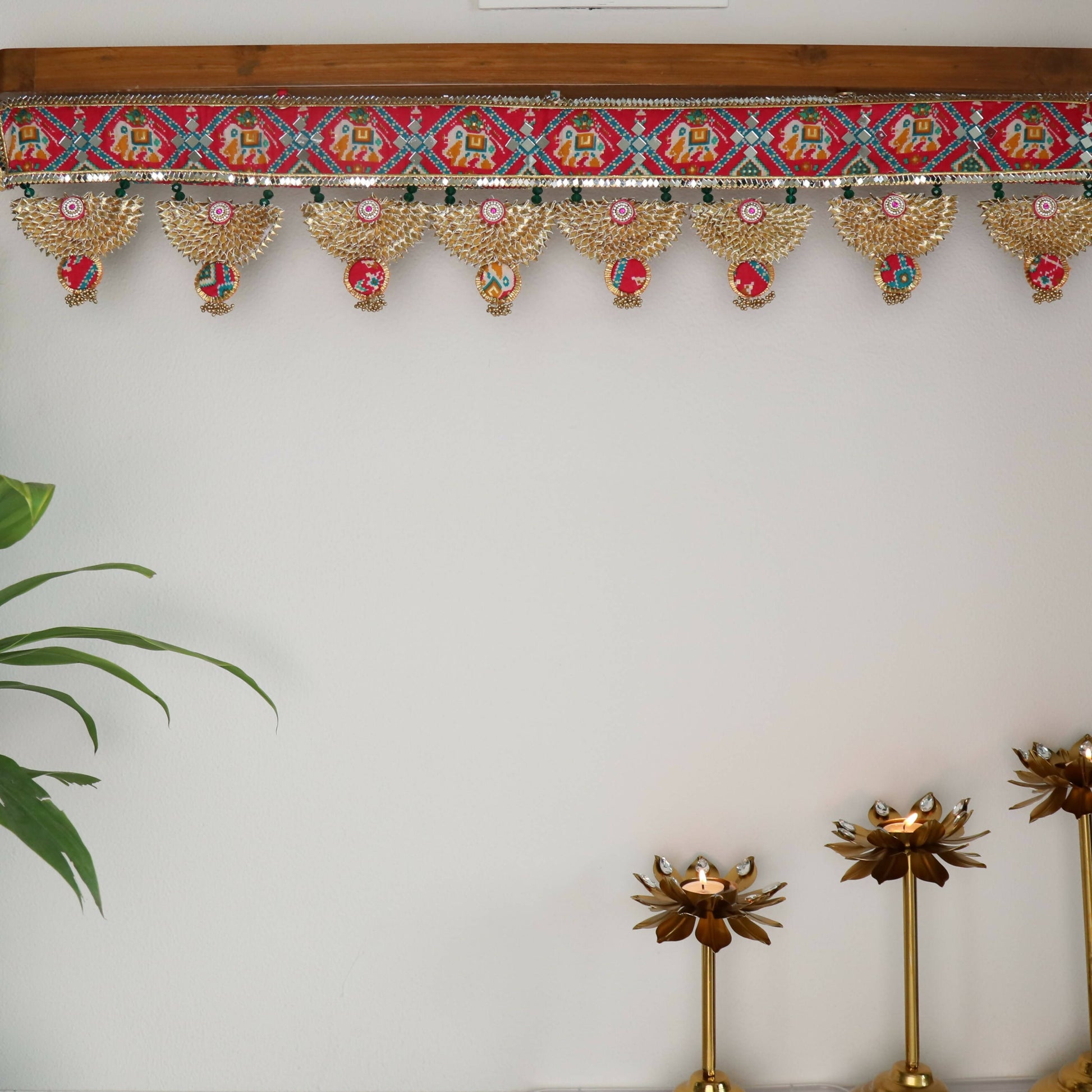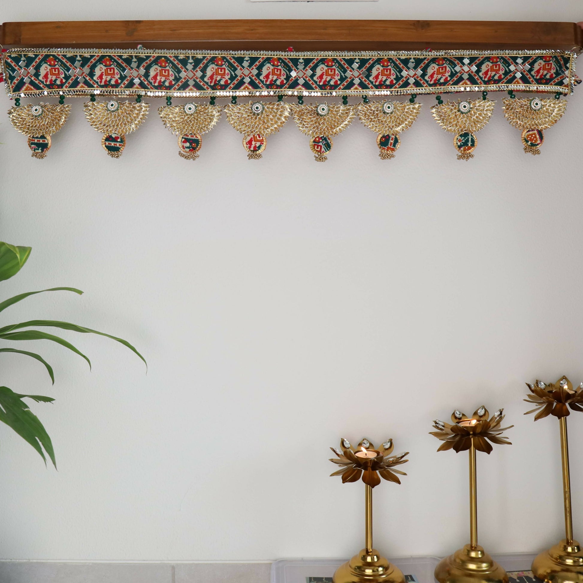 All the Torans are handmade by our skilled artisans and are perfect housewarming gifts.Pick a Toran that fits your interior and taste. These Bandhanwars will give your home a pop of colour and a festive spirit. Greet your guests with our beautiful handmade Torans hanging on your main door.
