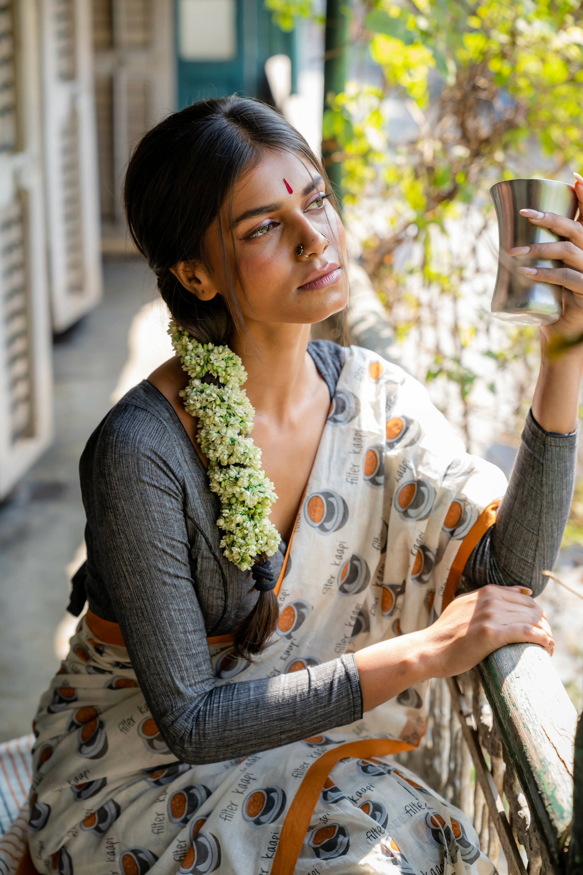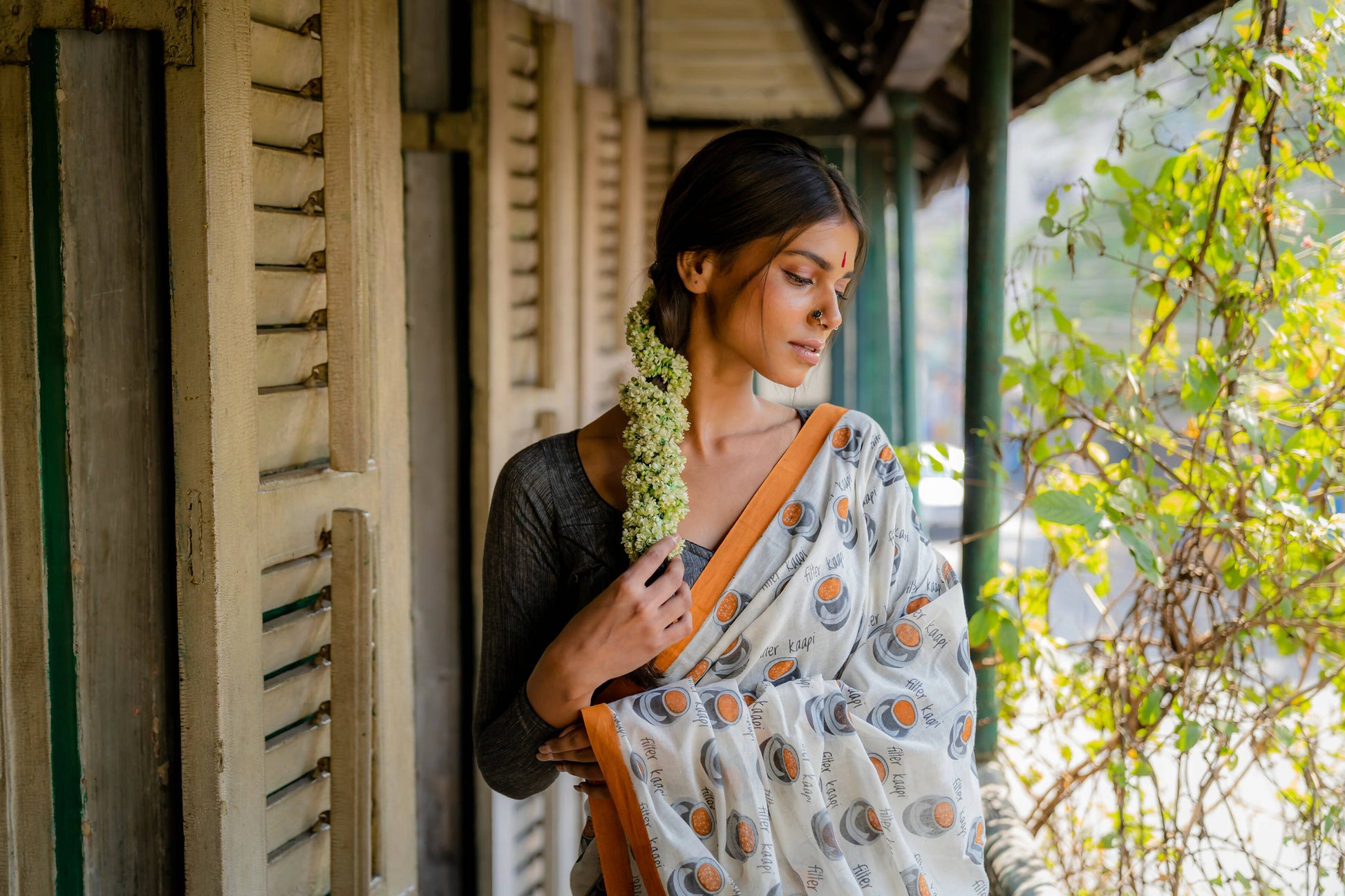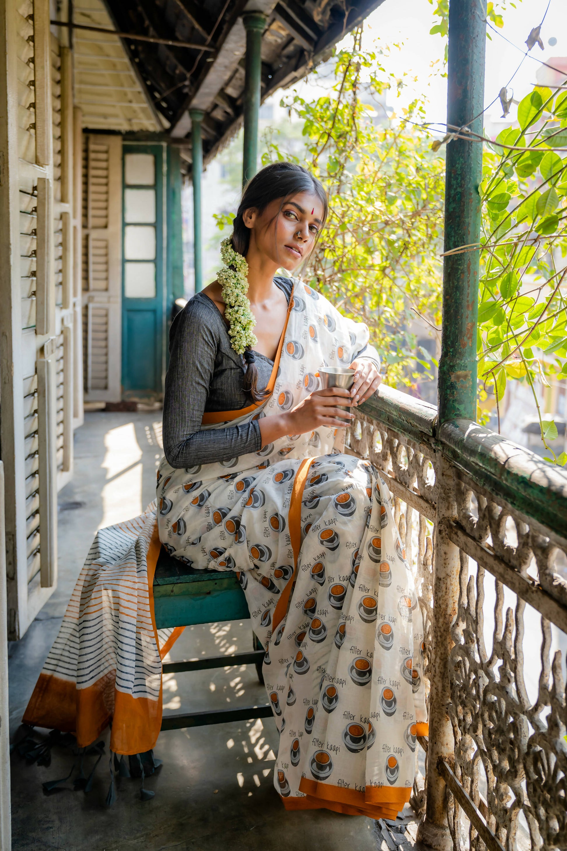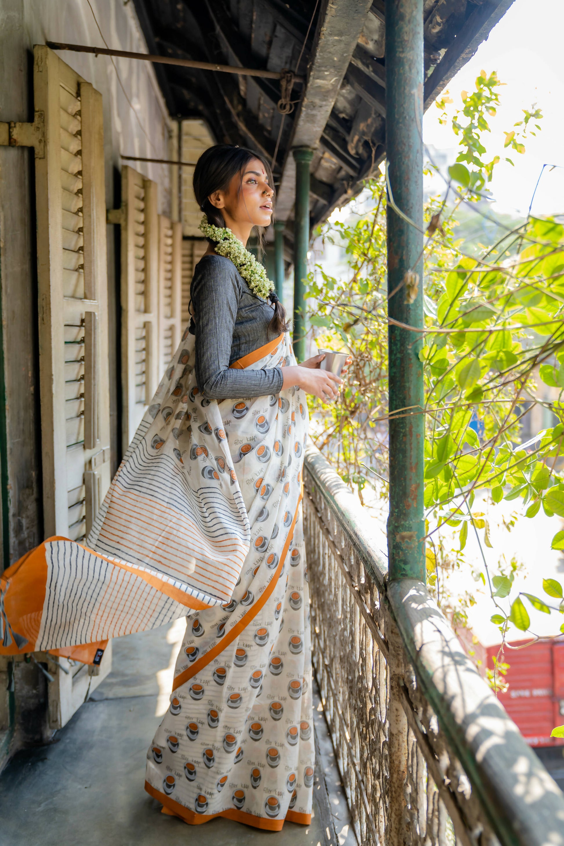 Filter Kaapi White Printed Saree