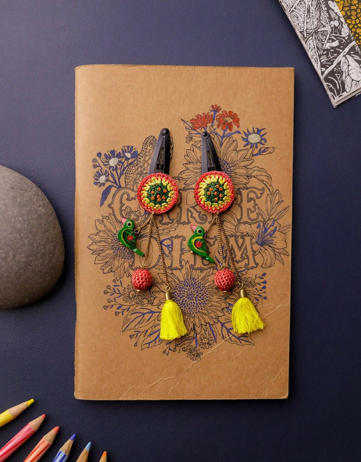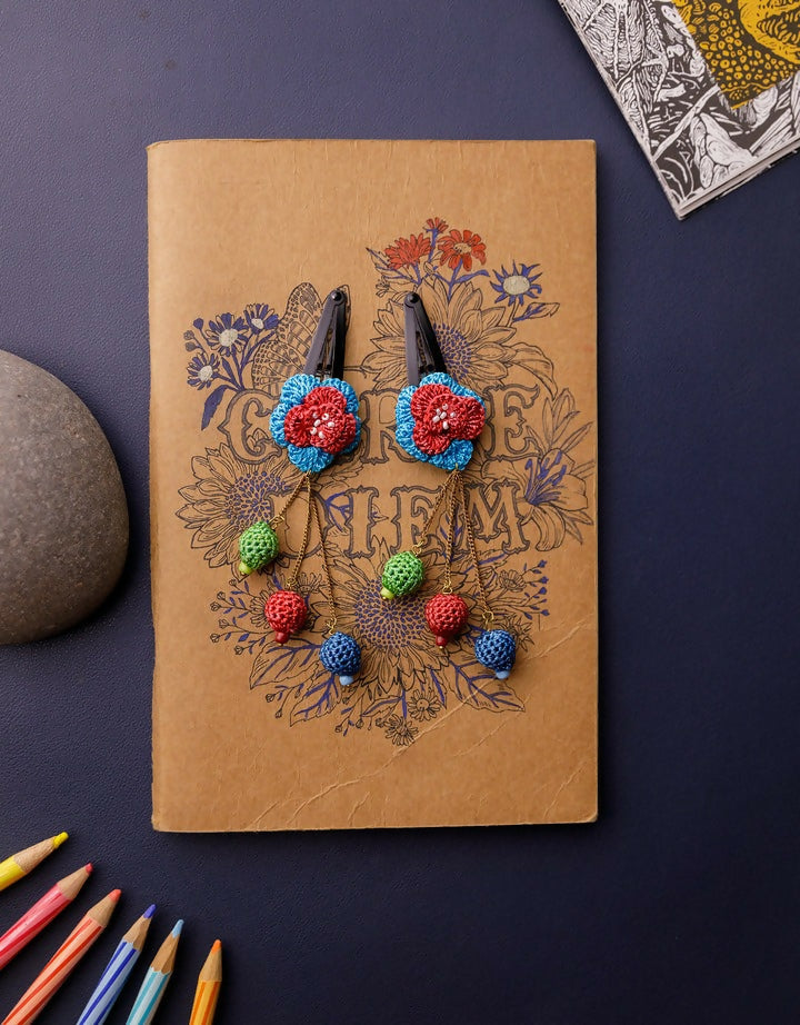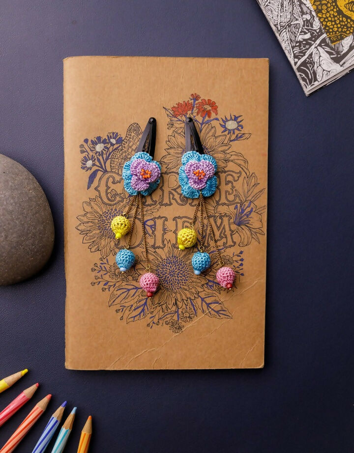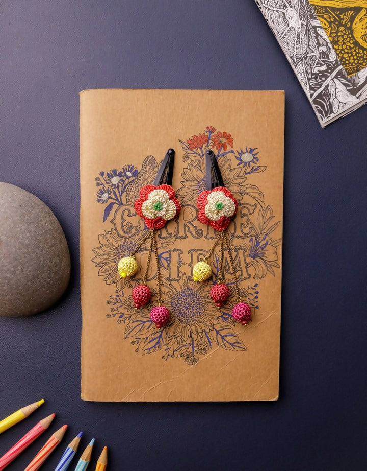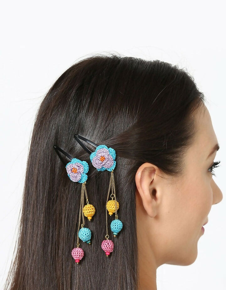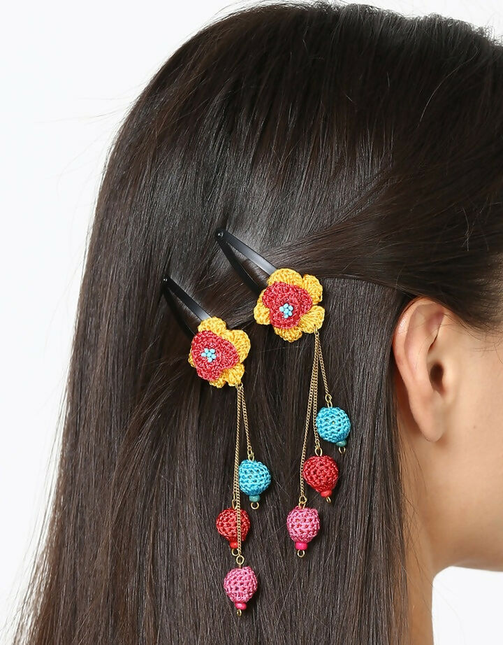 Adorn your little girls with these 100% handmade cute crochet flowers, no-slip tic tac hair clips. Lightweight and easy to maintain these soulful hair accessories are made with love by women artisans of Gaya. A perfect accessory for any outfit, these beautiful little hair clips come in a set of 2 and work well as a gift, too!