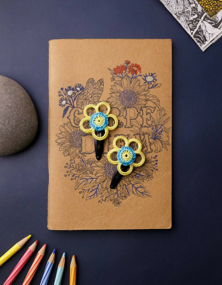 Adorn your little girls with these 100% handmade cute crochet flowers, no-slip tic tac hair clips. Lightweight and easy to maintain these soulful hair accessories are made with love by women artisans of Gaya. A perfect accessory for any outfit, these beautiful little hair clips come in a set of 2 and work well as a gift, too!