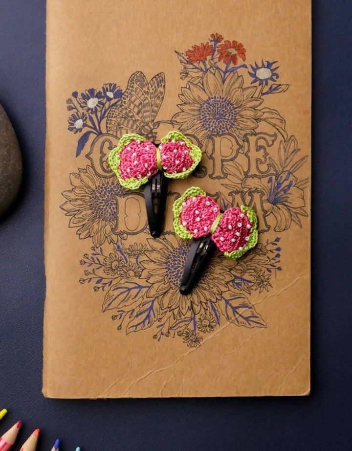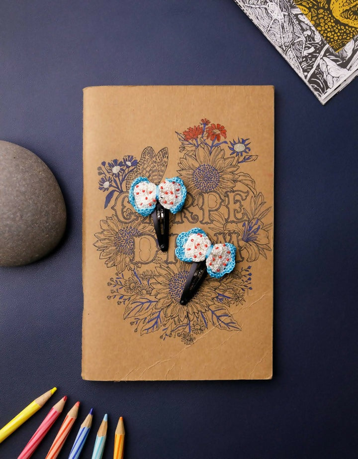 Adorn your little girls with these 100% handmade cute crochet flowers, no-slip tic tac hair clips. Lightweight and easy to maintain these soulful hair accessories are made with love by women artisans of Gaya. A perfect accessory for any outfit, these beautiful little hair clips come in a set of 2 and work well as a gift, too!