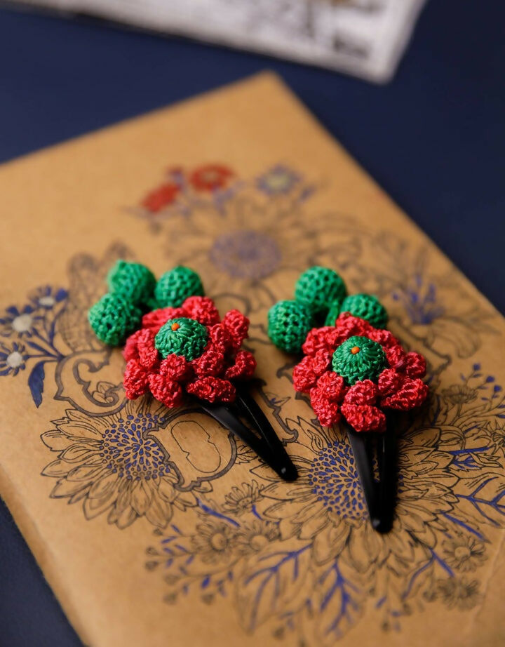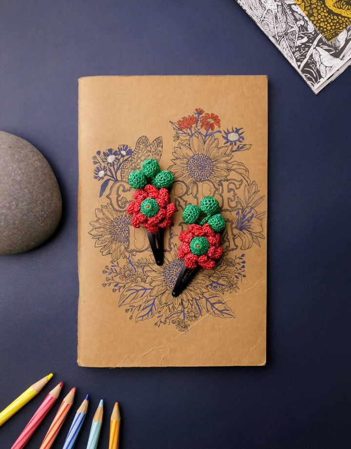 Adorn your little girls with these 100% handmade cute crochet flowers, no-slip tic tac hair clips. Lightweight and easy to maintain these soulful hair accessories are made with love by women artisans of Gaya. A perfect accessory for any outfit, these beautiful little hair clips come in a set of 2 and work well as a gift, too!
