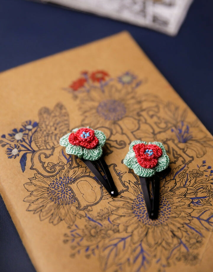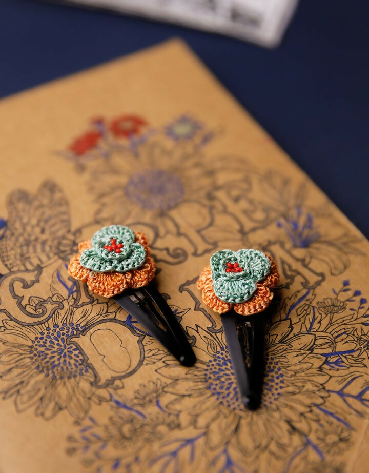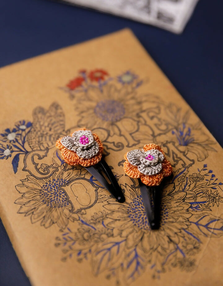 Adorn your little girls with these 100% handmade cute crochet flowers, no-slip tic tac hair clips. Lightweight and easy to maintain these soulful hair accessories are made with love by women artisans of Gaya. A perfect accessory for any outfit, these beautiful little hair clips come in a set of 2 and work well as a gift, too!