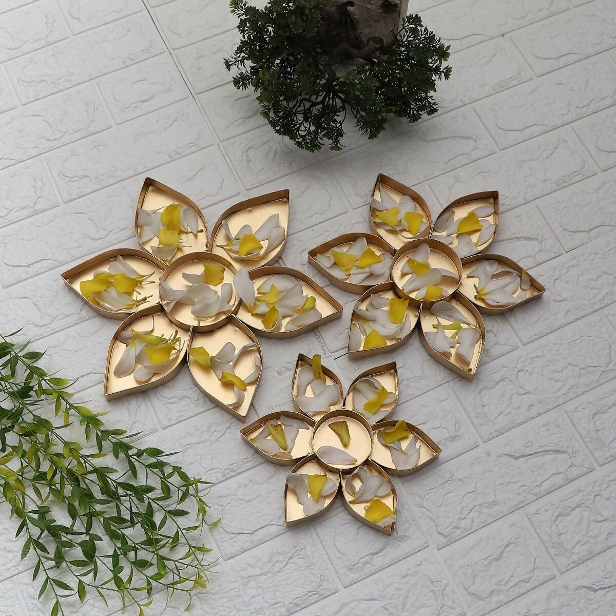 A Flower Shape Urli Platter Set of 3 is Perfect to add elegance for your Home & Office this Festive Season , It can be used for gifting also!