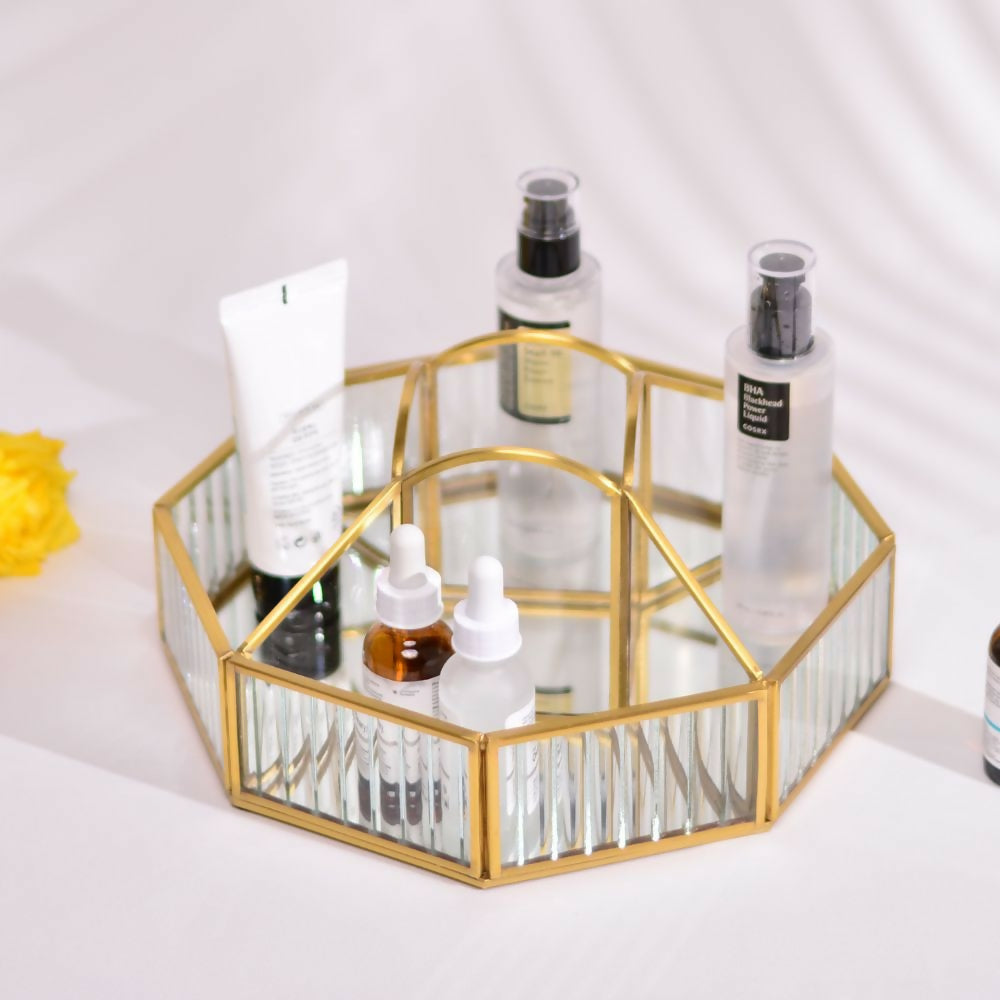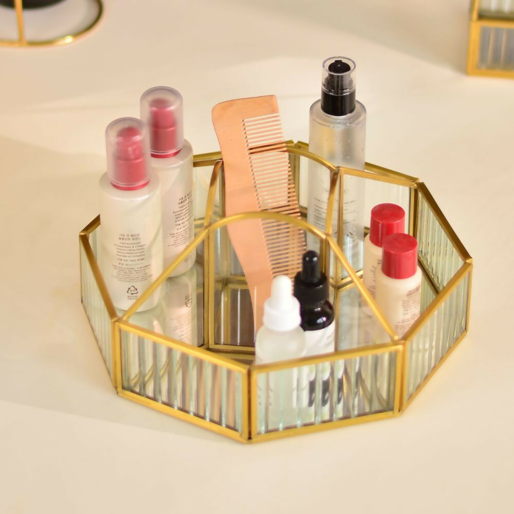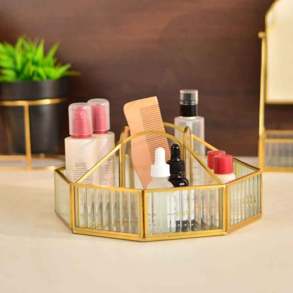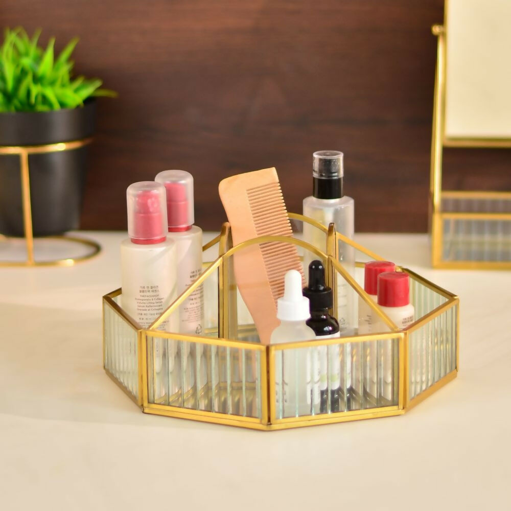 Fluted Glass Hexagonal Organizer | Make-up Organiser| Toiletry Organiser
