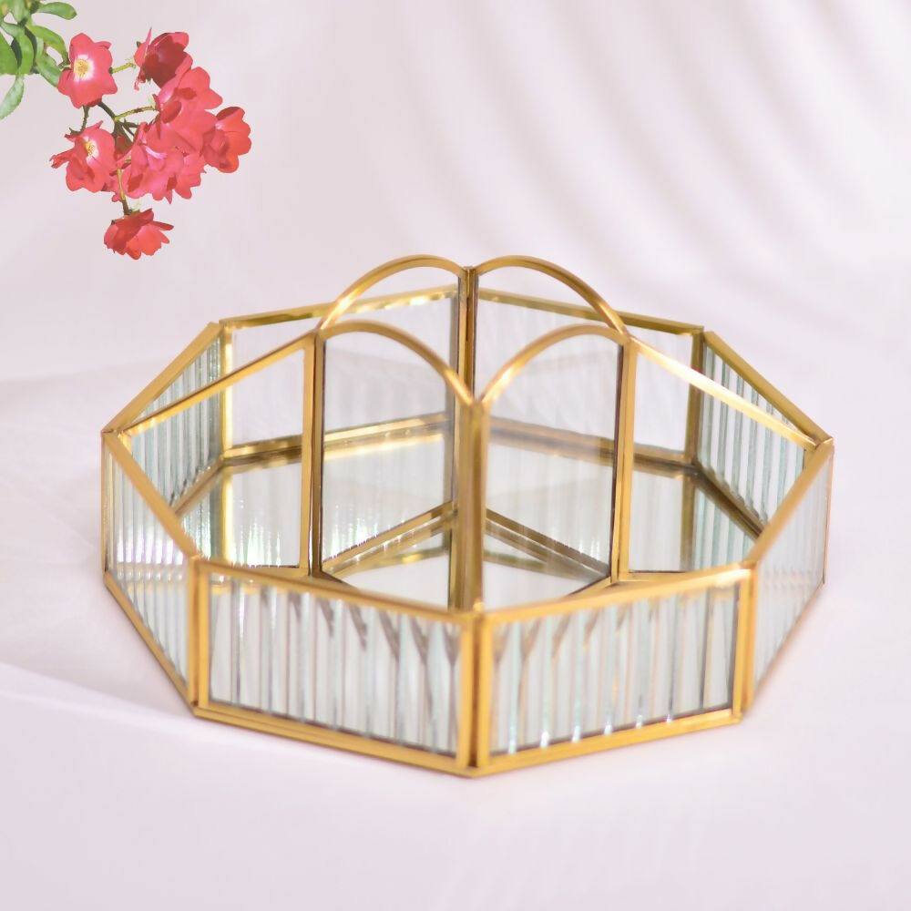 Explore elegance with our Fluted Glass Hexagonal Organizer, featuring 5 compartments. This unique organizer seamlessly blends form and function, providing a sophisticated solution to elevate your space and streamline your essentials.