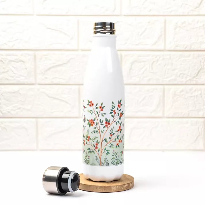 The Forest Greens Steel bottle showcases some delicate greens and florals along with the enchanting beauty of colourful birds and butterflies! This bottle is crafted with high quality 304 grade double walled stainless steel interior to keep hot drinks hot or cold drinks cold for hours. No wonder this is the most preferred choice when it comes to beautiful yet thoughtful gifting.