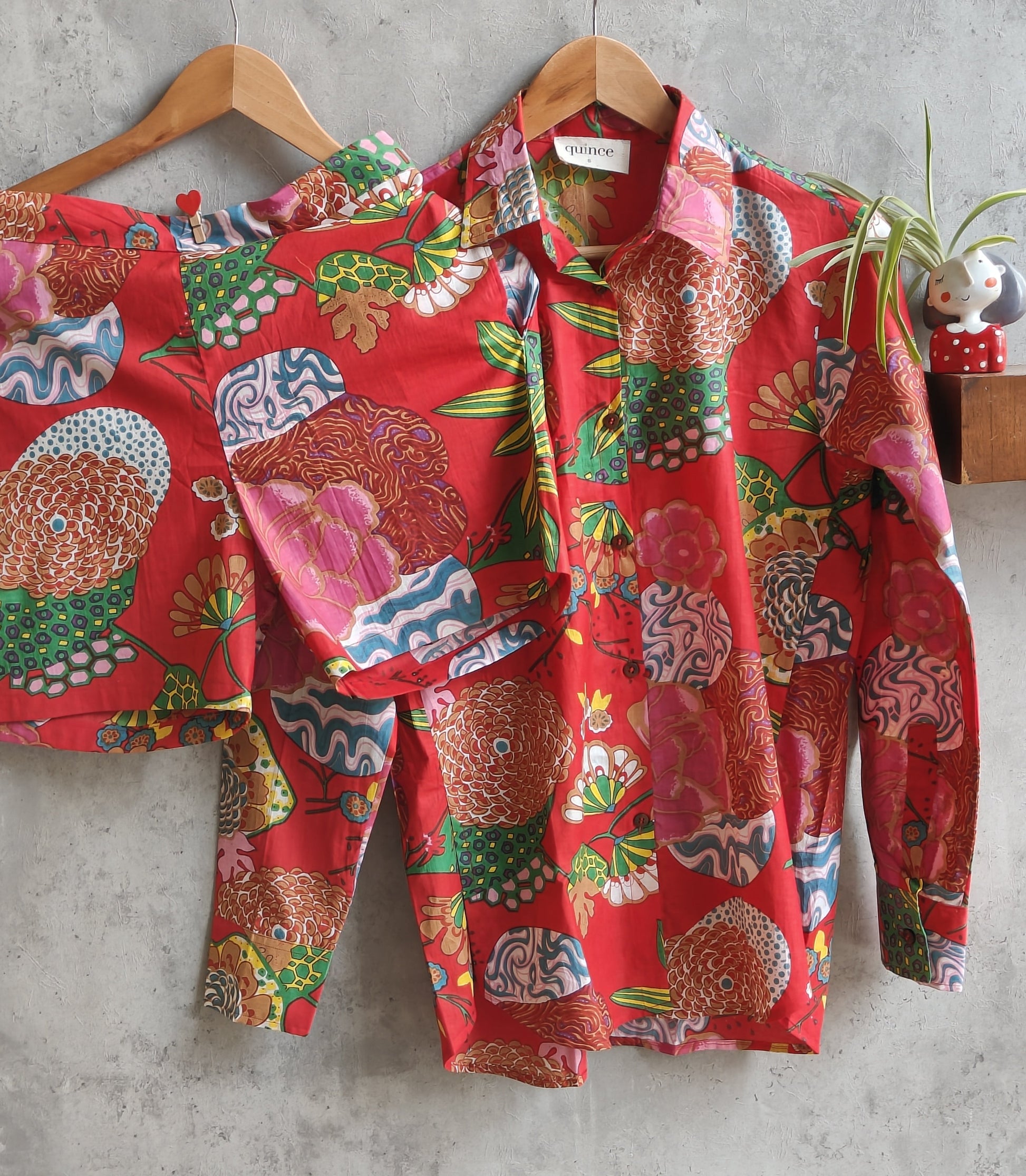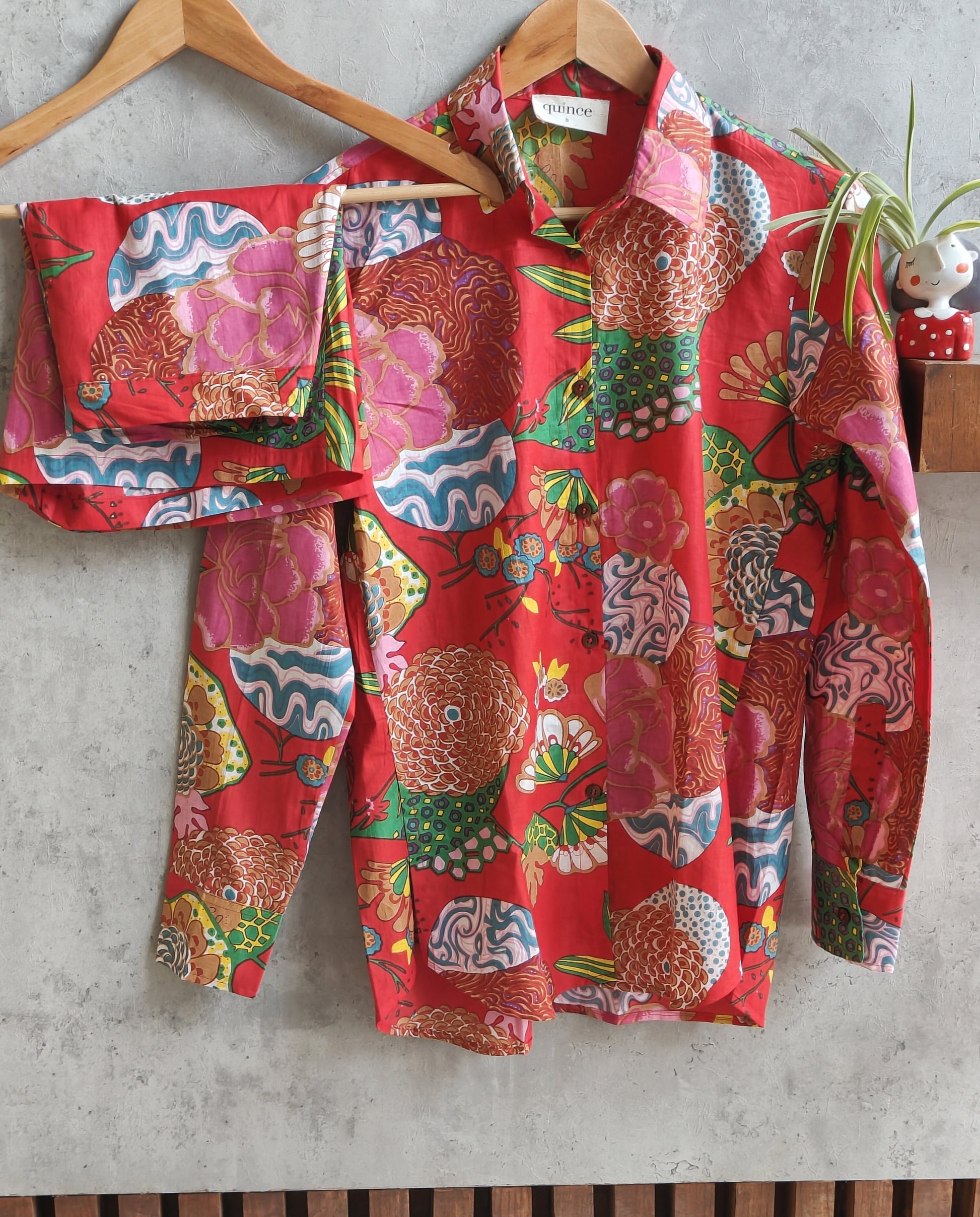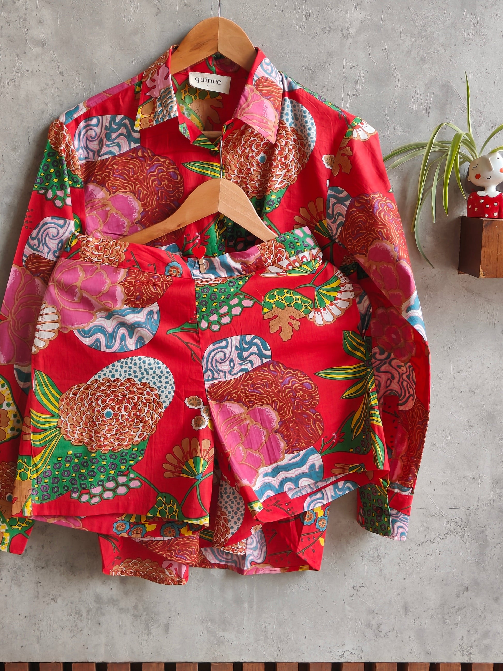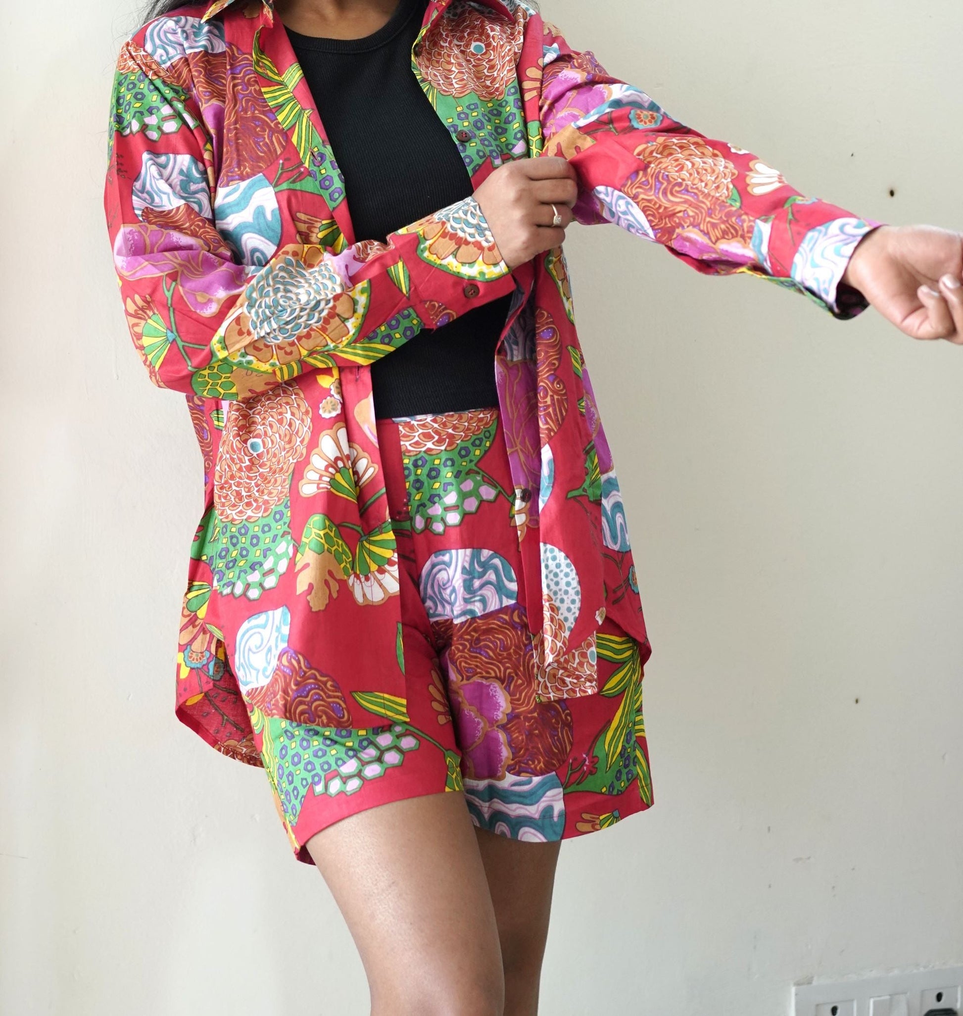 This holiday season make a vibrant impact with our fruity floral packed shorts set. Easy breezy set which can be worn as separated or as a set in 100% cotton to keep you relaxed and easy. The lovely red with the bold print is an eye catcher. This is surely not to be missed.