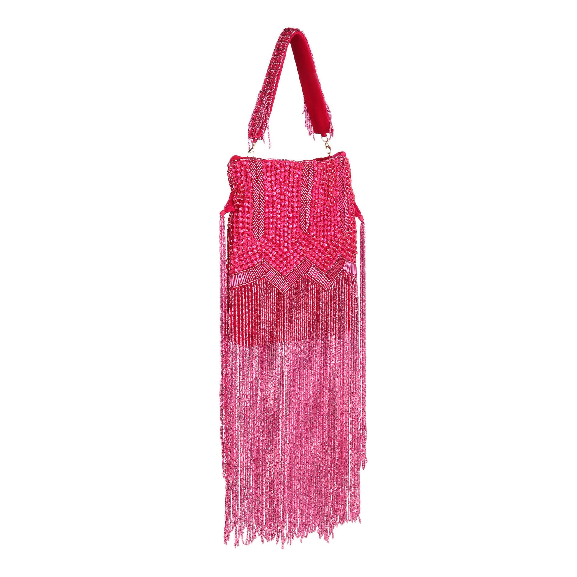 Fuchsia Flame Long Tassel Velvet Potli Bag