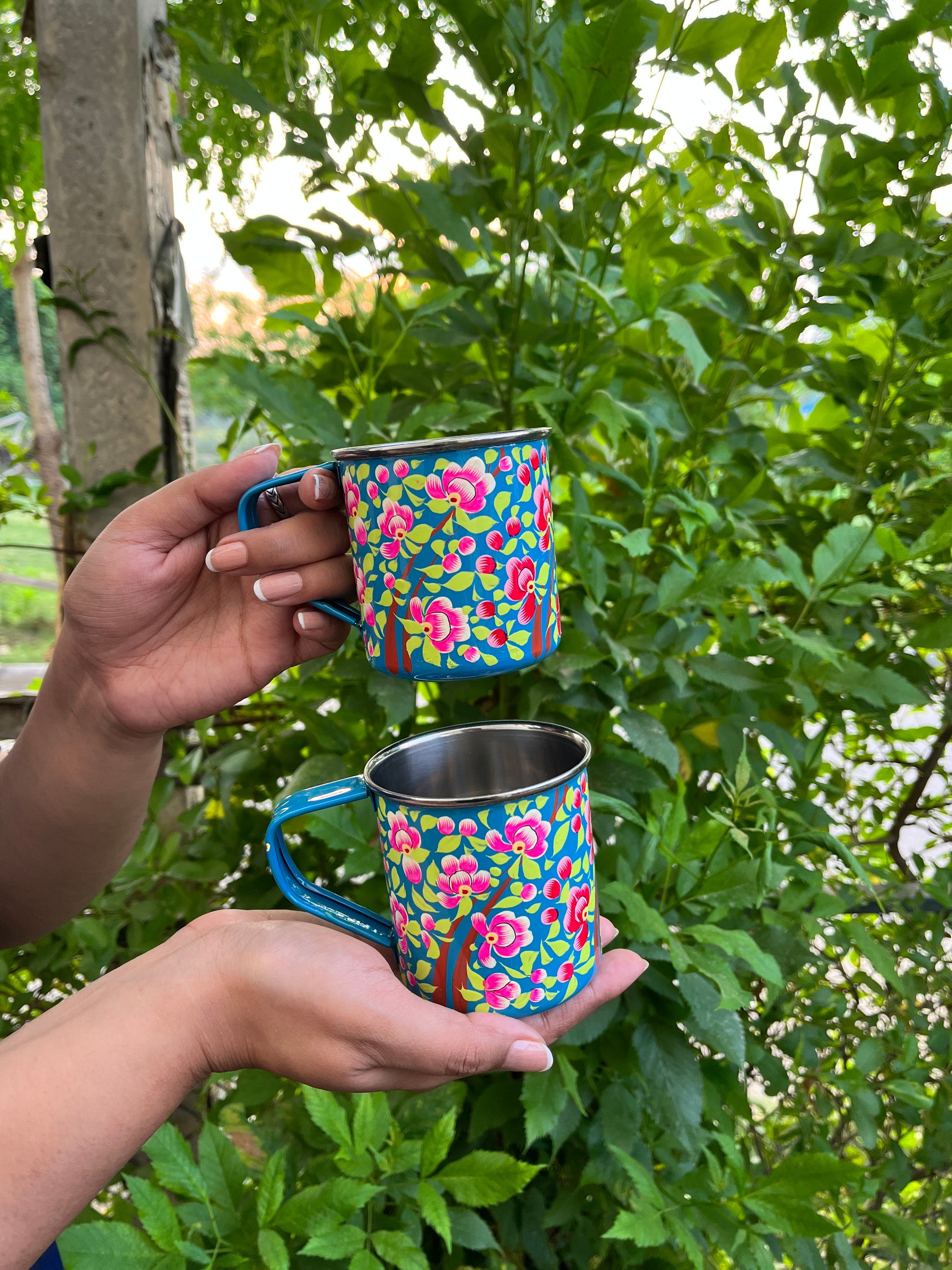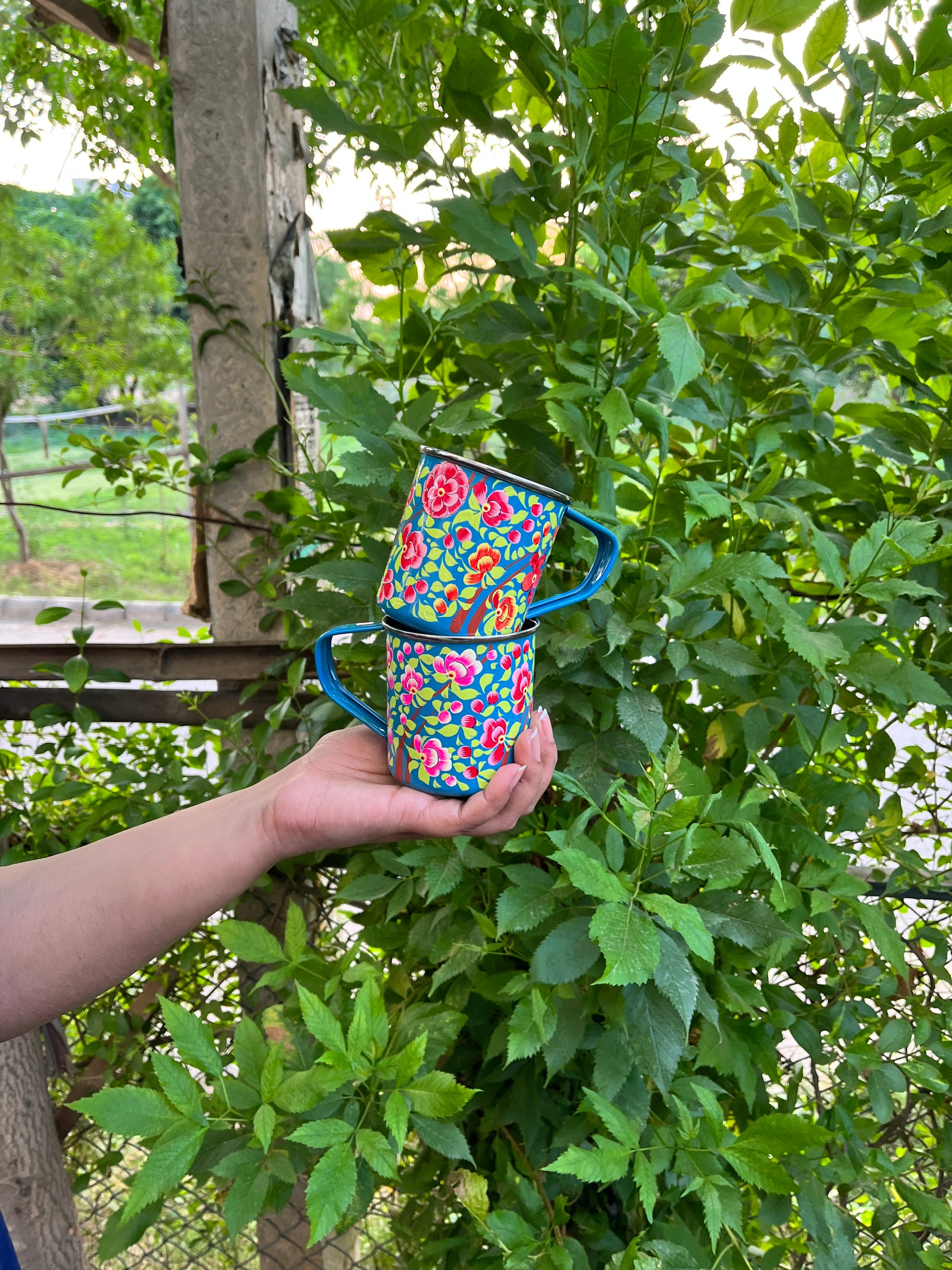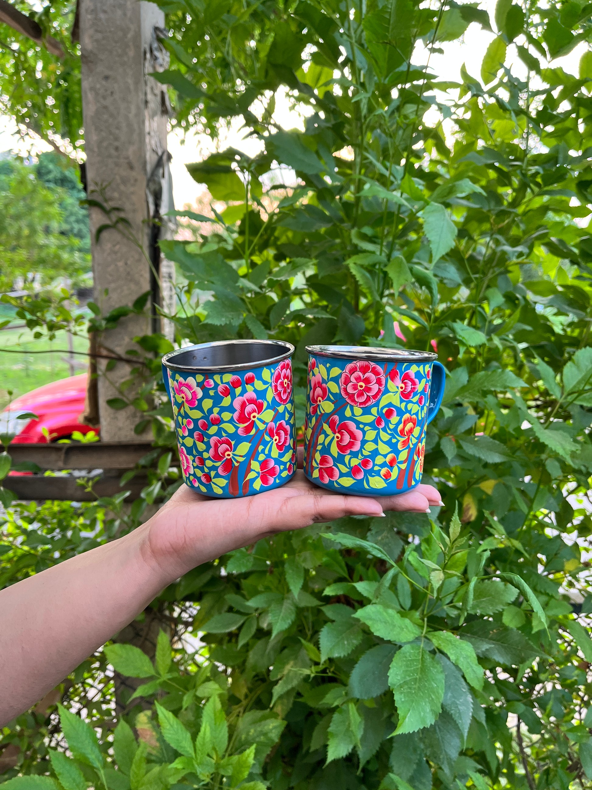 Elevate your morning routine with the Garden Glow Coffee Mug. Hand painted by skilled artisans, this stainless-steel mug is not only aesthetically pleasing, but also durable and unique. Enjoy your favorite tea or coffee in style with this one-of-a-kind piece.