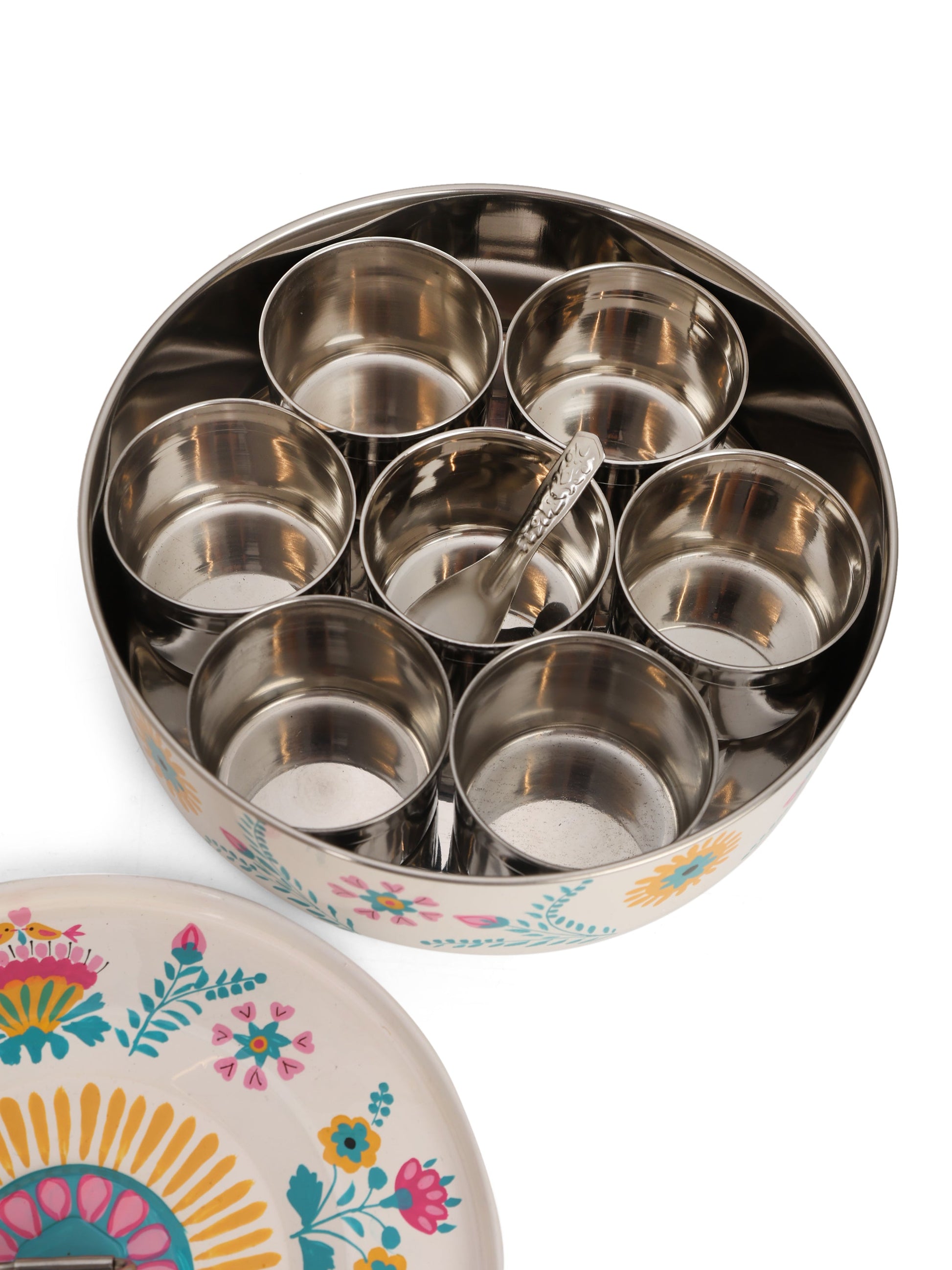 - Pack Contains: 1 Masala Box, 7 Dibbi Inserts, 1 Spoon