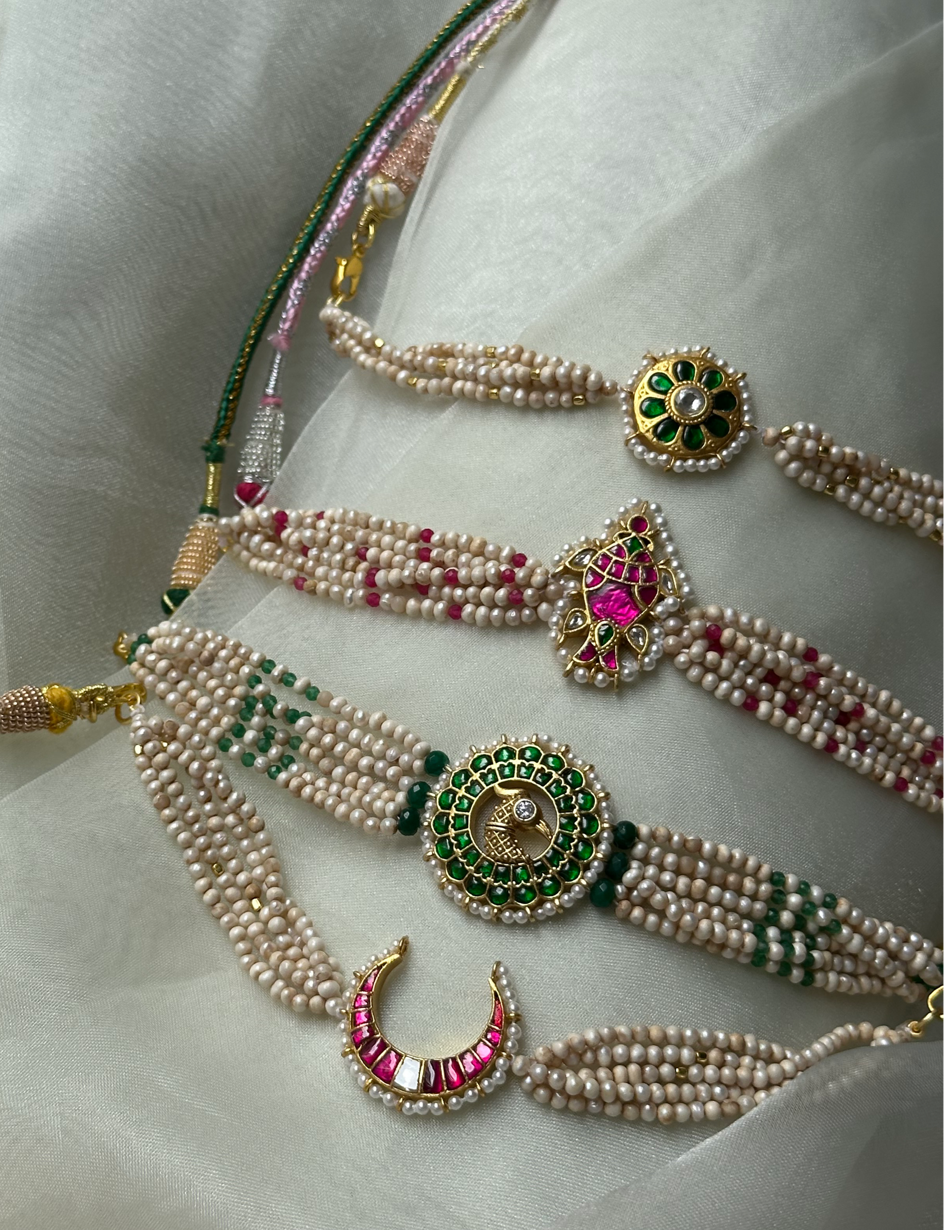 Materials: 92.5 Fine Silver (Hallmarked),Kundan Emerald, Natural Antique Pearls