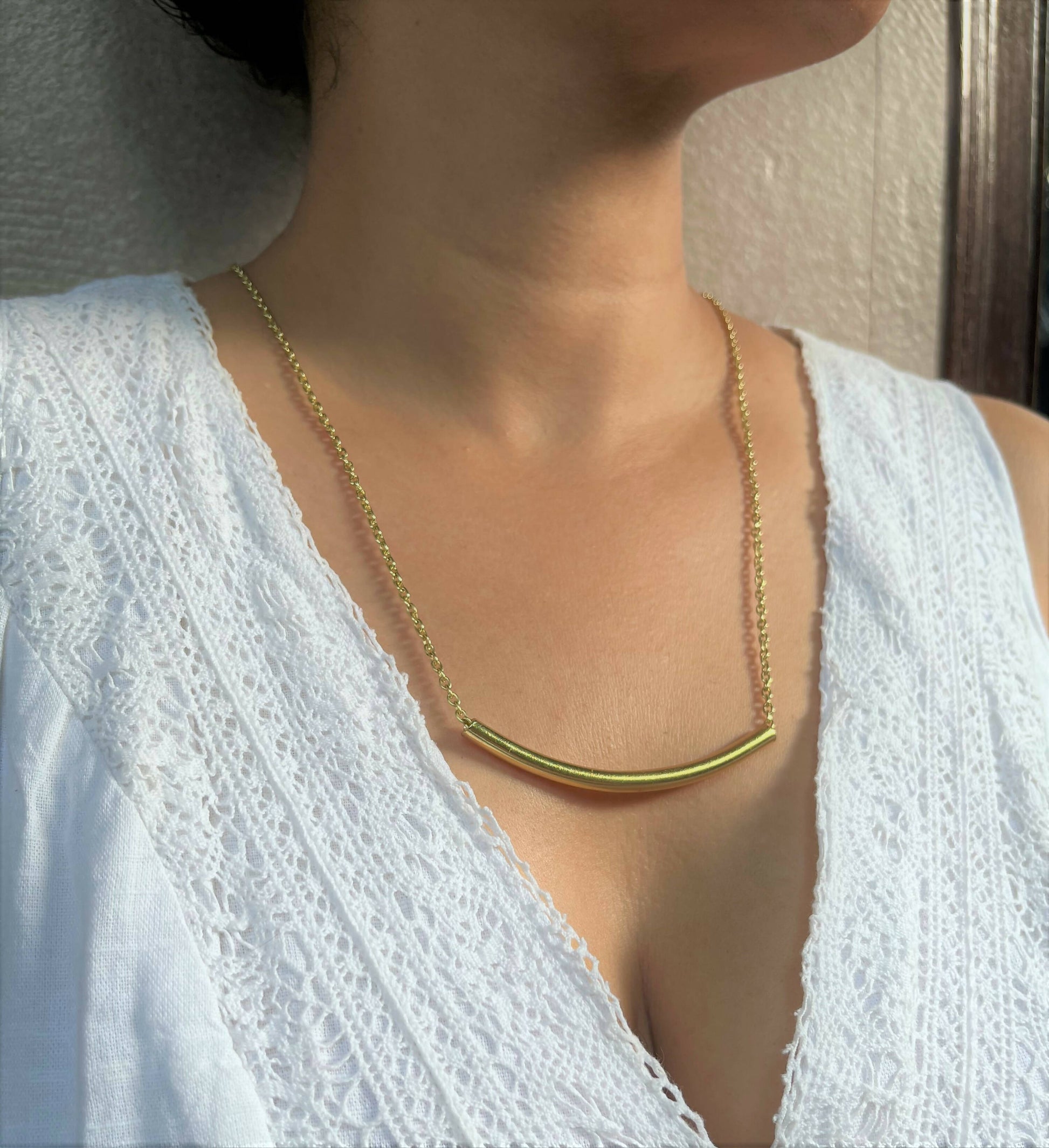 Gold Curve Bar pendant with chain