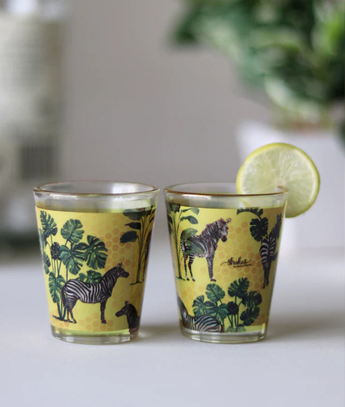 Gold Rim Zebra Print Shot Glasses (Set of 4)