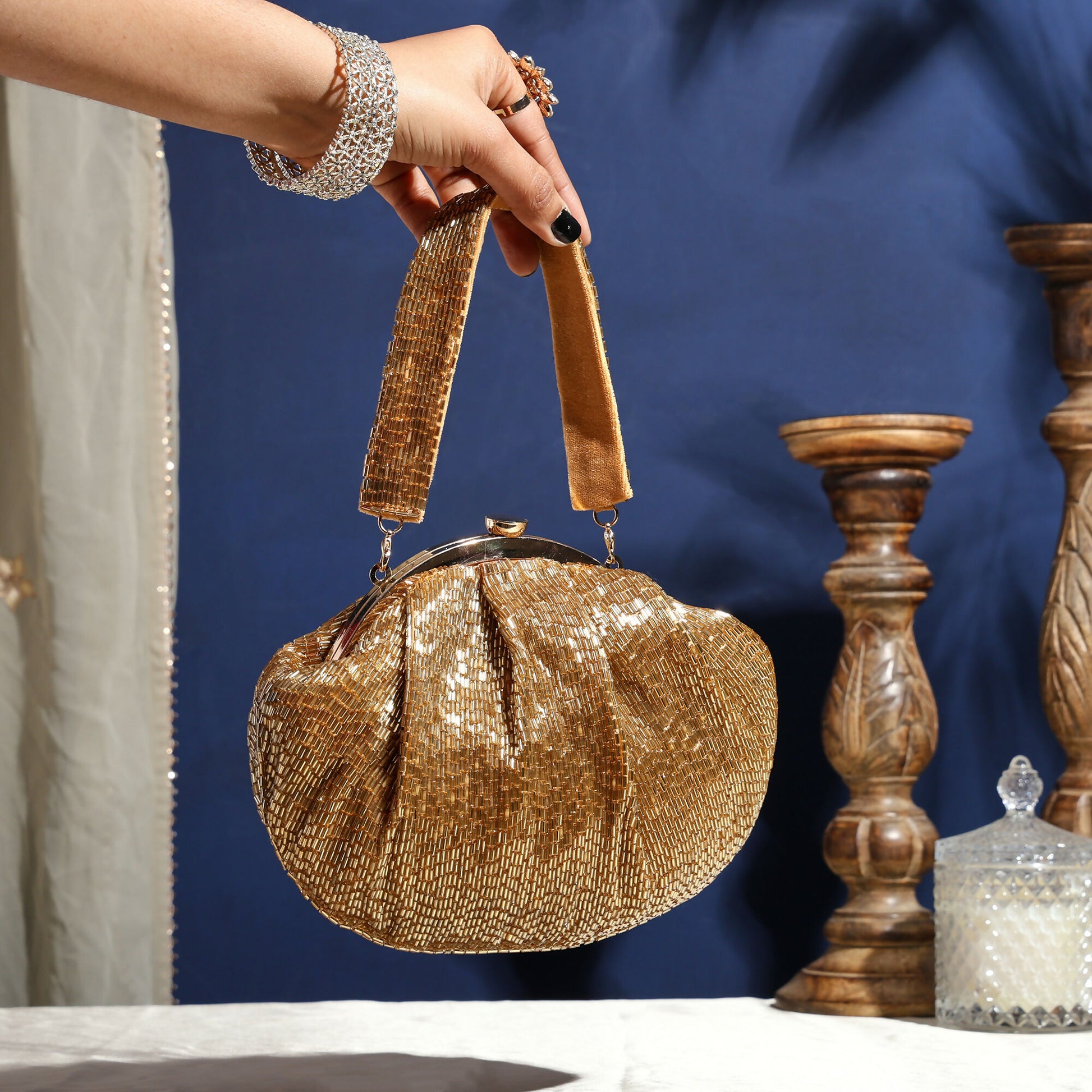 Golden Cutdana Glam Batua