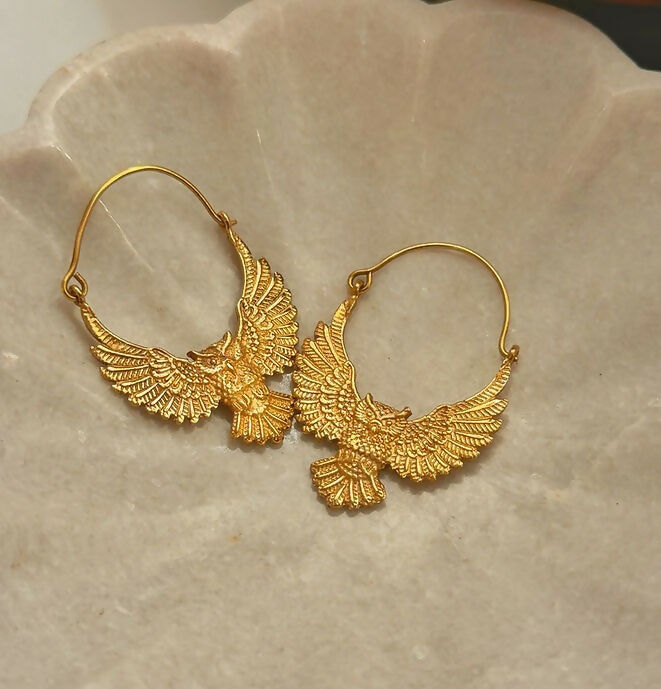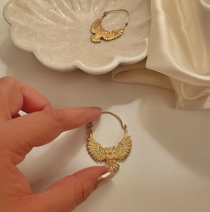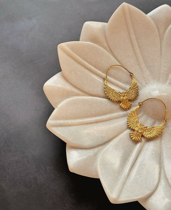 Golden Owl Brass Earrings